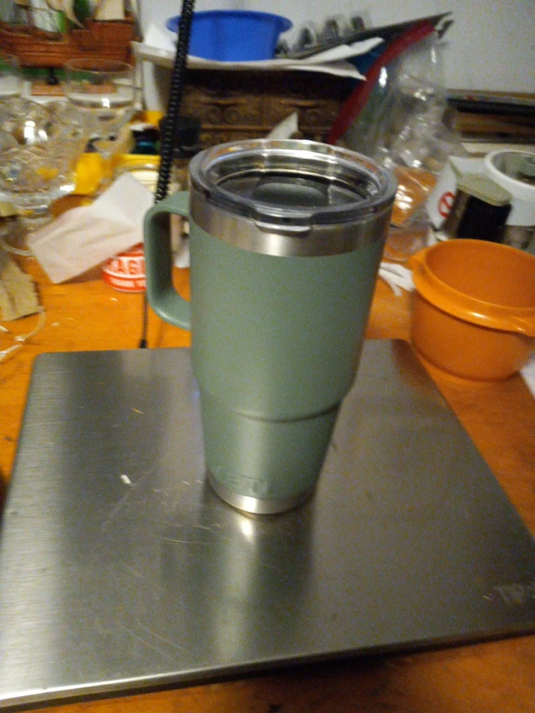 Keep your beverages at the desired temperature with this Yeti insulated tumbler in dark olive green. Perfect for sports enthusiasts, this stainless steel tumbler is designed to keep your hot drinks warm and your cold drinks cool. The tumbler is branded with the Yeti logo and is a great addition to your kitchen storage and organization collection. Whether you're on the go or relaxing at home, this tumbler is sure to meet your needs. 25 oz size