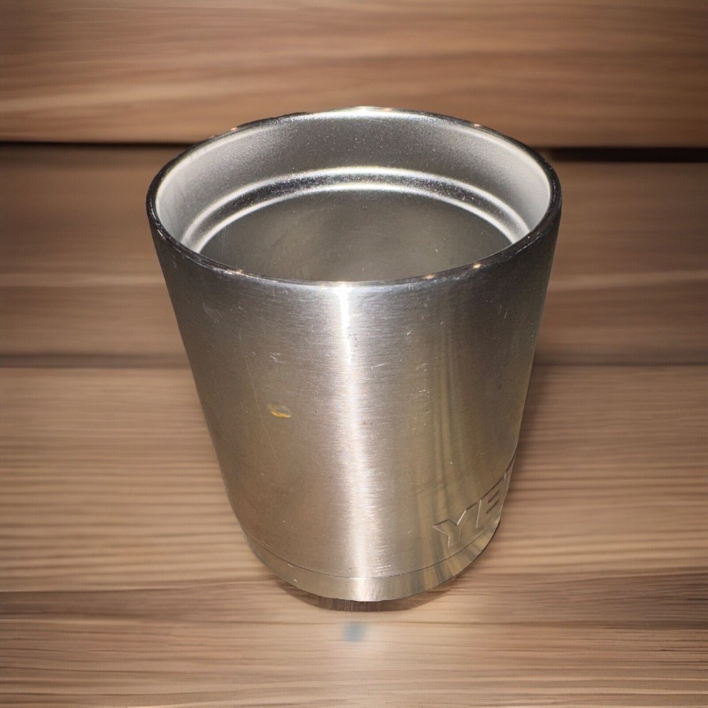The YETI Rambler Lowball Mug is a 10 oz insulated tumbler made of stainless steel. It comes in a silver color and features a solid color pattern. The mug is designed to keep hot or cold beverages at the desired temperature for a long time. It is personalized with the Yeti brand name and has a capacity of 10 oz. The mug is made in China and is part of the Home & Garden, Kitchen, Dining & Bar, Kitchen Storage & Organization, and Vacuum Flasks & Mugs categories.