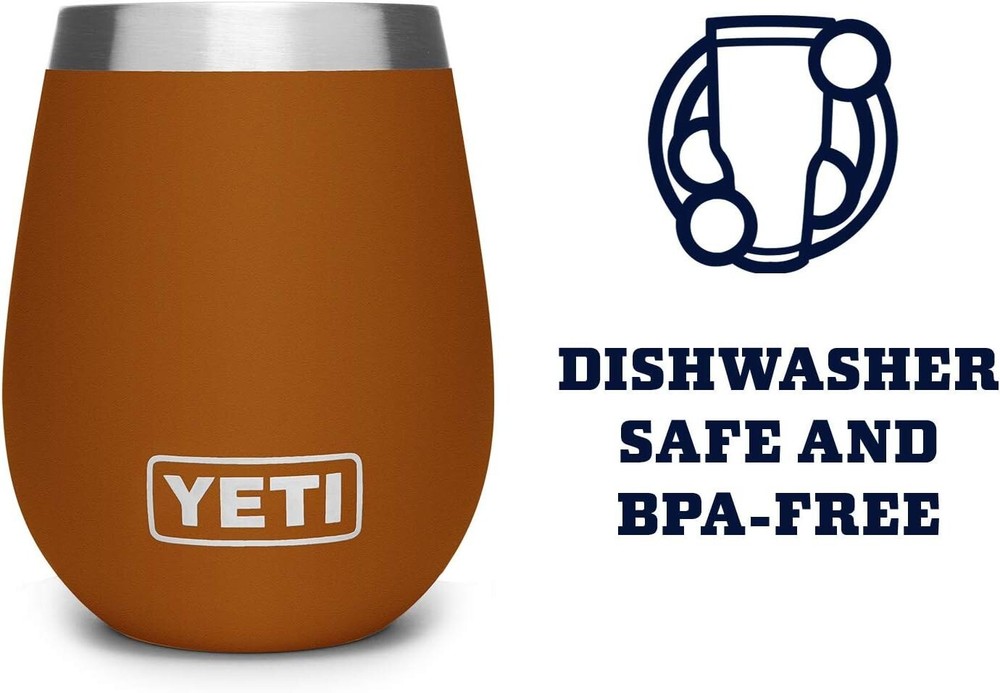 YETI Rambler 10 oz Wine Tumbler, Vacuum Insulated, Stainless Steel, NO LID Brand YETI Color Clay Special Feature insulated, break_resistant, Vacuum Insulated Vacuum Insulation, freezer_safe Style Modern Theme Wine Features While most things are better outdoors, it’s especially true of wine. Now, enjoying your wine in the wild is simultaneously hard core and laid back 18/8 stainless steel made with kitchen-grade stainless steel, so they’re puncture- and rust-resistant Double-wall vacuum insulation keeps cold drinks cold and hot drinks hot until the last sip Duracoat Color that is built to last - no fading, peeling, or cracking here YETI Wine Tumblers are dishwasher safe. Each measures 4.5 in high and 3.5 in wide