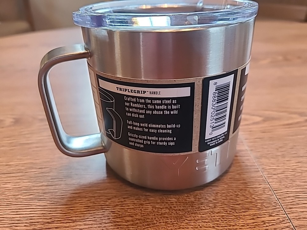 Type:MugModel:YETI Ramblergtin13:Does not applyUPC:Does not applyFeatures:With LidMaterial:Stainless SteelBrand:YetiStyle:OUTDOOR_RECREATION_PRODUCTColor:SilverCapacity:14oz