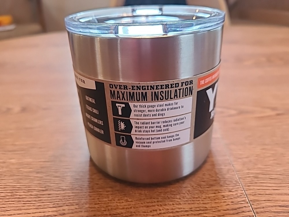This listing is for a YETI Rambler 14 oz mug stainless steel with the standard lid. It is brand new.