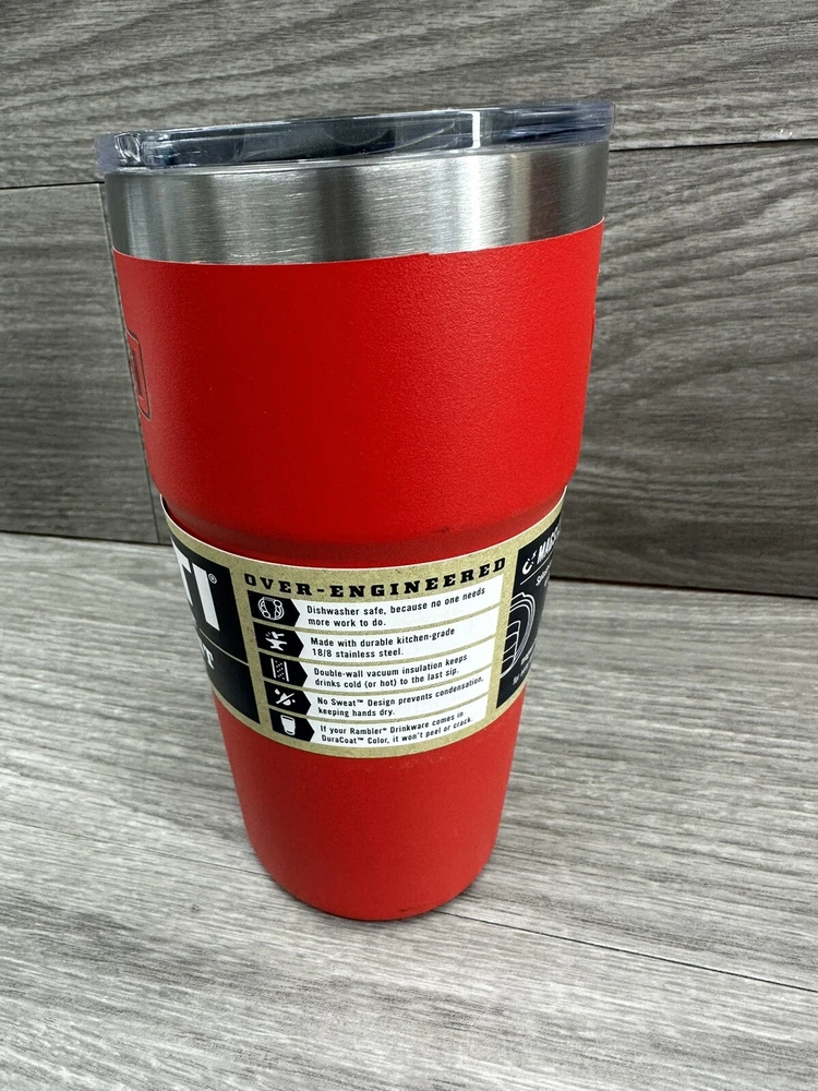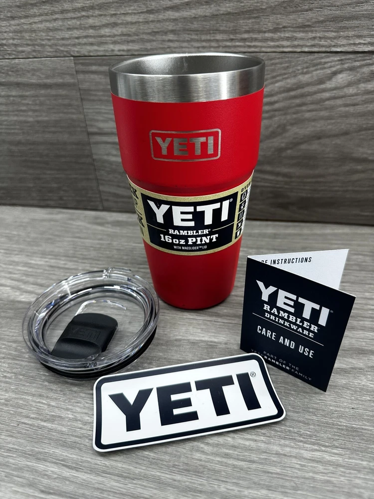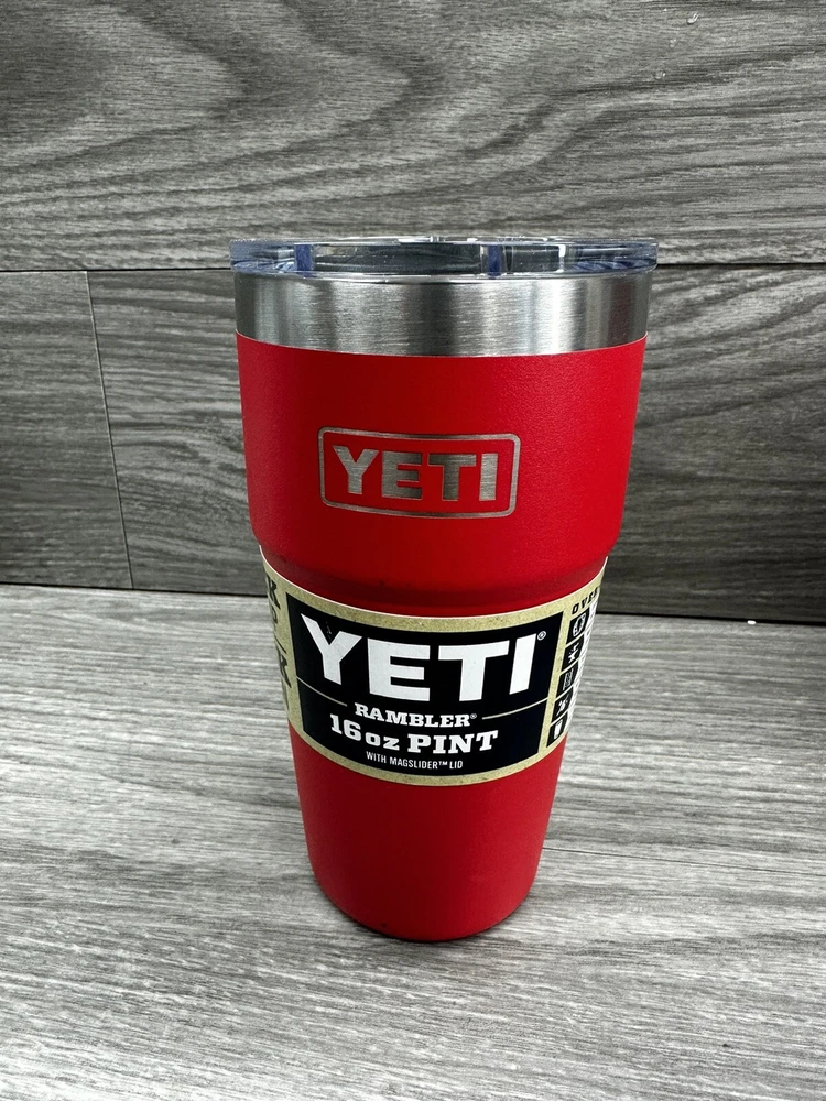 Introducing the YETI Rambler 16 oz Stackable Pint Ltd Ed in Rescue Red with MagSlider lid! This limited edition pint is perfect for any beverage, hot or cold, and is designed with a solid color pattern. The slide lock lid keeps your drink secure and the pint itself is made of stainless steel and BPA-free plastic. The YETI Rambler is not only a functional addition to your collection but also a stylish one. The beach and nautical theme of this bottle is perfect for any outdoor activity. This pint is a must-have for any YETI fan.
