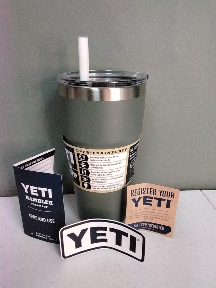 The YETI Rambler 26 oz Straw Cup in Camp Green is a high-quality stainless steel tumbler with a click closure and straw lid for easy sipping. It features a 26 oz capacity, double wall insulation, and is BPA-free for safe use. This tumbler is ideal for outdoor activities like camping, hiking, and adventuring, making it a convenient and durable hydration solution. The Camp Green color adds a fun touch to your drinkware, while the included sticker and straw enhance its functionality. Perfect for staying hydrated in style on your next adventure.