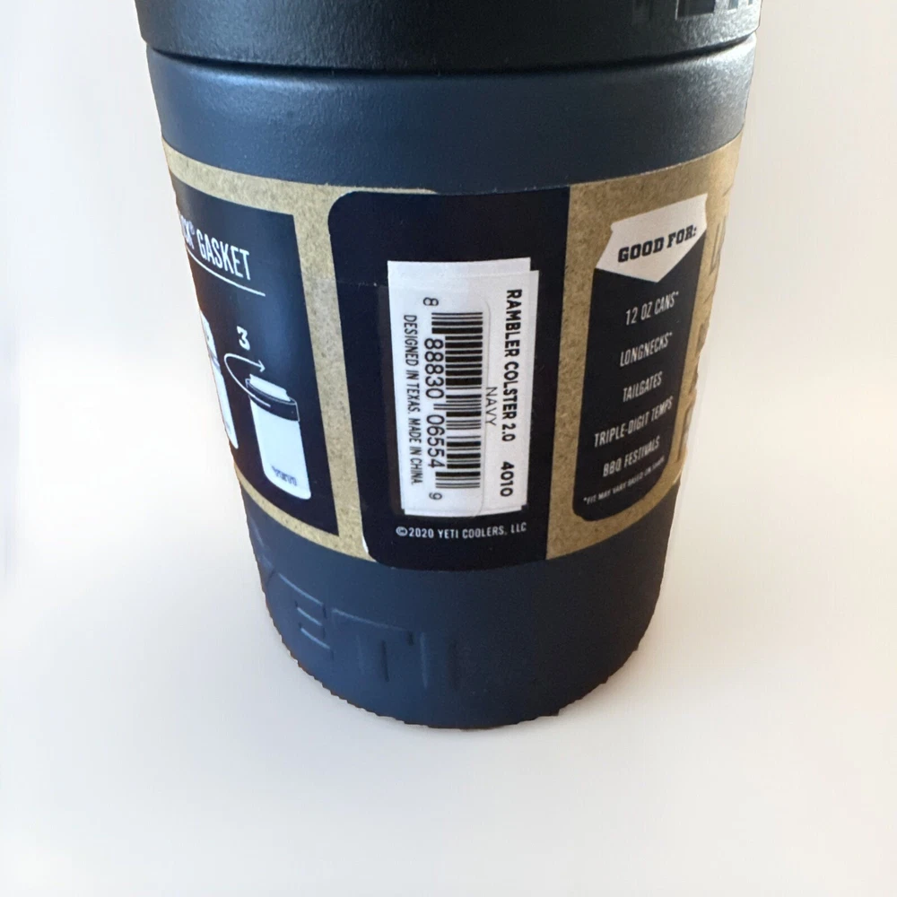The YETI Rambler Colster 2.0 is a 12oz stainless steel can insulator designed to keep your cold beverages cold for a long time. It has a solid color navy pattern and a twist lid type. The can is personalized and has a capacity of 12oz. It is suitable for teens, boys, adults, girls, and kids. The YETI Rambler Colster 2.0 is manufactured in China and is part of the Sports character family. It is perfect for beach trips, bottle insulation, and food & drink themes. Hand wash only. New not used but sitting in cabinet and moved around. Bottom has tiny bit of wear.
