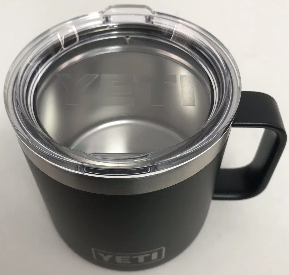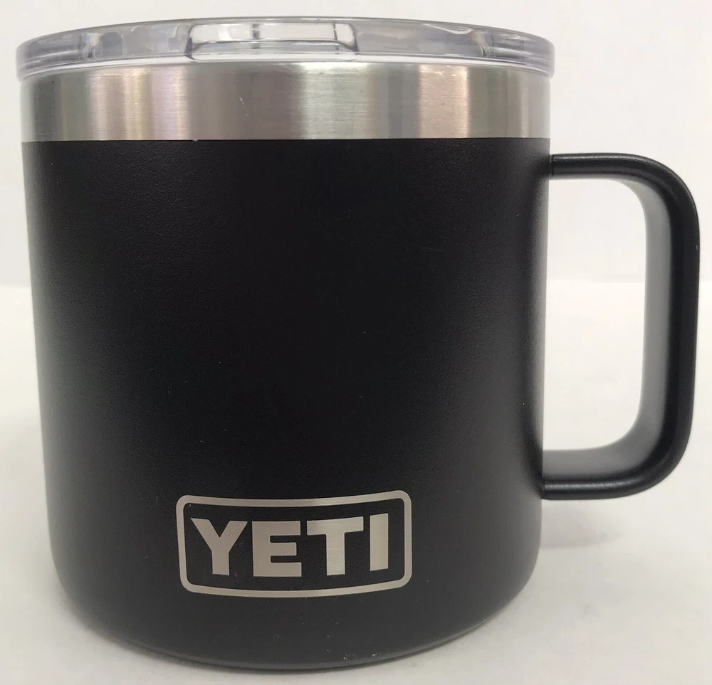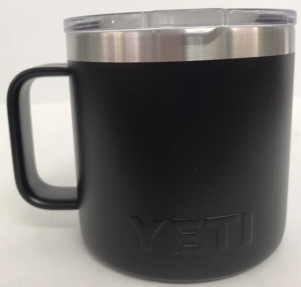YETI Rambler Insulated Black Stainless Steel 14oz Coffee Mug w/Lid Nice pre-owned condition. See pictures for details.