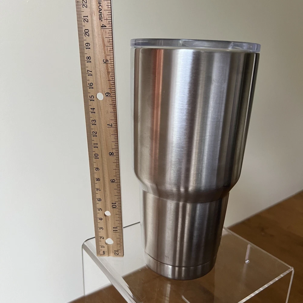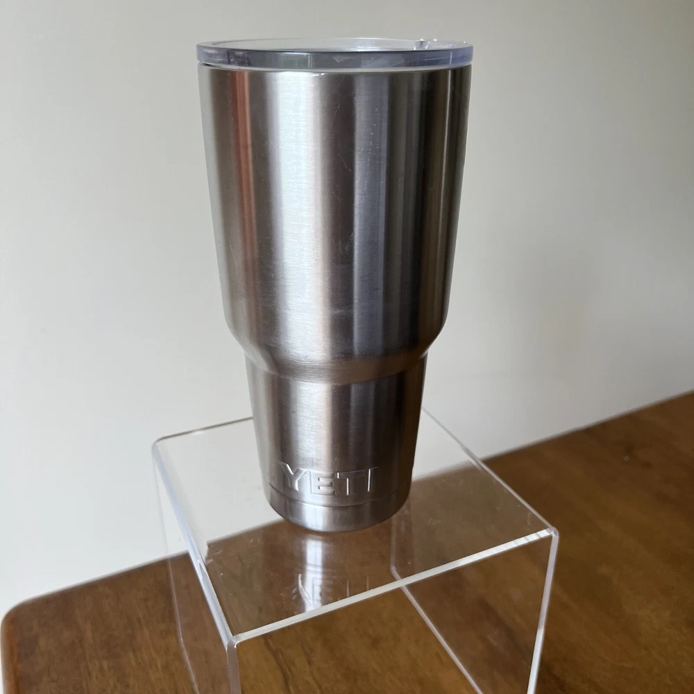 Introducing the YETI Stainless Steel Rambler 30 oz Tumbler Cup with Lid, perfect for keeping your hot or cold beverages at the desired temperature for hours. This two-piece tumbler set comes in a sleek silver color and is made of durable stainless steel material. The straw lid makes it easy to sip on your favorite drink, and the insulated feature keeps your beverage fresh and clean. Whether you're on the go or enjoying a relaxing day at home, this tumbler set is a must-have for any beverage lover. With a capacity of 30oz, you can enjoy your favorite drink wherever you are. The YETI Rambler model is known for its quality and durability, making it a great investment for anyone looking for a reliable tumbler set.