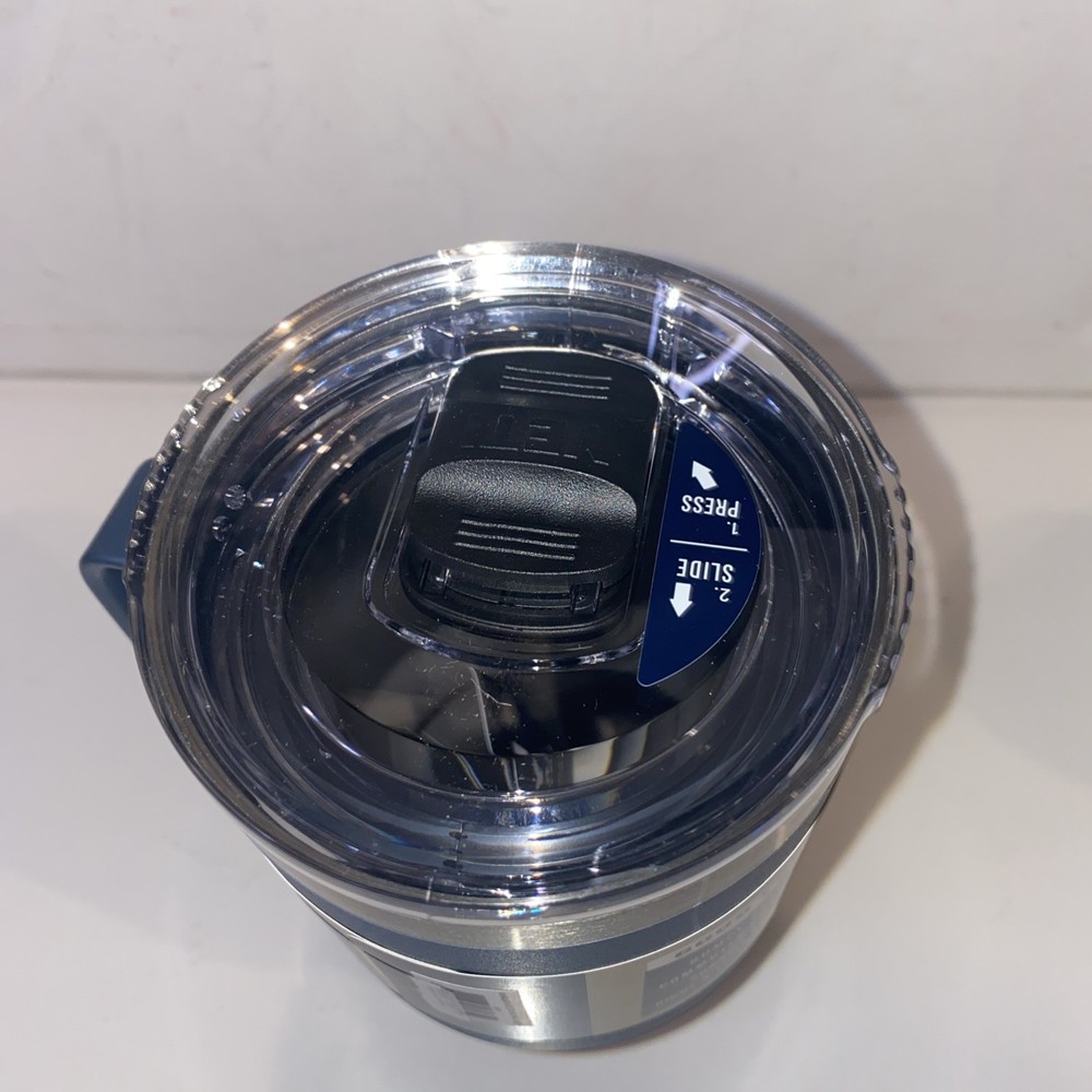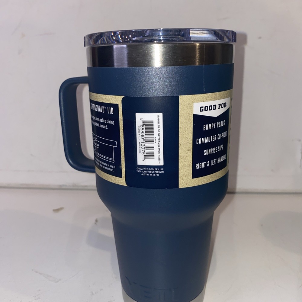 The YETI Rambler Vacuum Insulated 30 oz Mug with Magslider Lid in Navy Blue is a stylish and durable travel mug made of stainless steel. With a solid blue color and a sleek Stronghold Lid, this mug is perfect for outdoor activities like beach trips. It has a capacity of 30 fl oz and features a convenient handle for easy carrying. The brand's reputation for quality and insulation makes this mug a reliable choice for keeping your beverages hot or cold for extended periods.