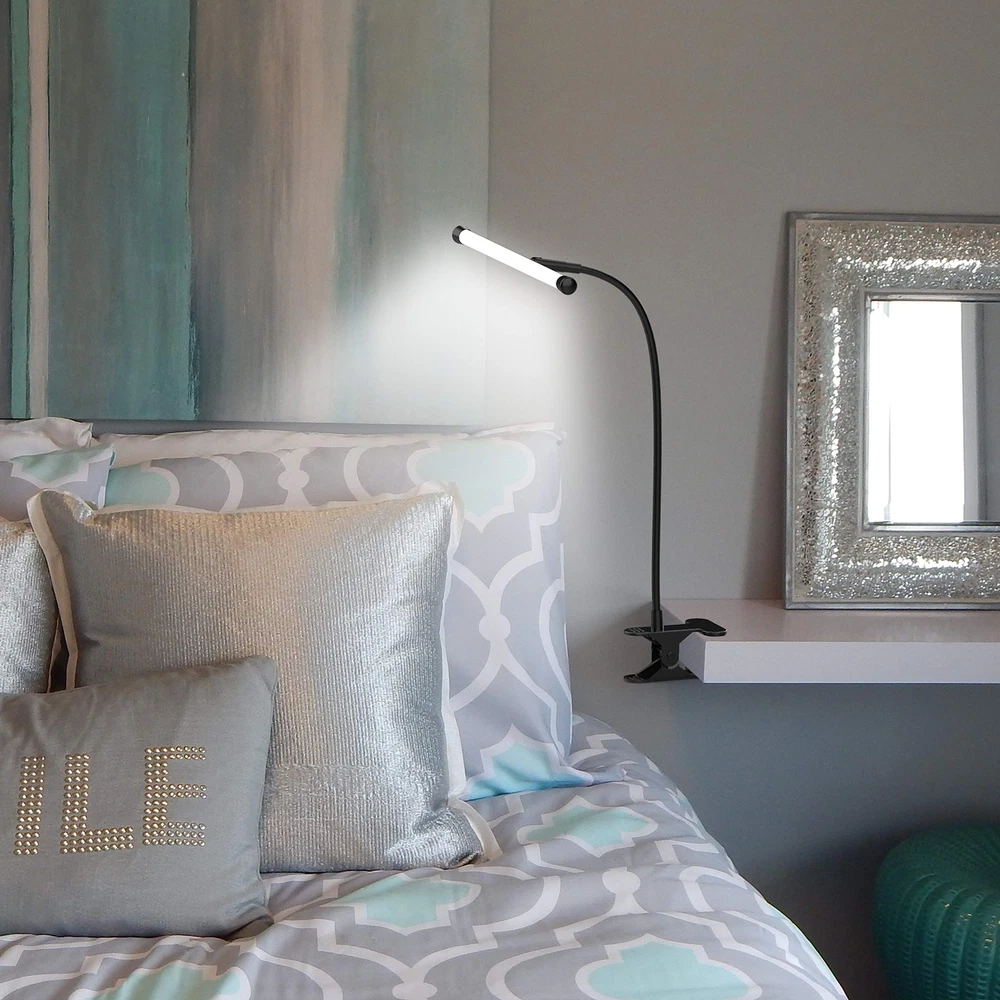 [Flexible Gooseneck Design] The video conference lights with a flexible neck and head can be adjusted up and down 180 degrees and rotated 350 degrees for easy positioning and setting of perfect lighting directions as needed. [Dimmable] 10 Brightness Levels - Press the brightness button can allows you to easily adjust the brightness level between 10% and 100% to achieve the perfect lighting. easily find the perfect lighting for your project. 3 color temperatures optional - Reading lamp have 3000K-4000K-6500K (3 color temperatures) to satisfy your different lighting needs. [USB Powered & Memory Function] This desk lamp come with an adapter. Insert the USB Cable to power adapter, computer or other USB devices to power the clip lamp. Brightness memory will memory your current brightness when turning off the light. (Note: if you cut off the power supply instead of turning off the switch, it will release all settings.) [Desk Lamp Clamp Easy to Install] The clip on light with strong metal clamp can be clipped on any flat surface that the thickness is less than 2.4"/6cm(max) thick. [Professional Eye Protection] Adopting diffusion translucent material, close to daylight illumination, emitting soft light without ghost, glare or flicker. led task lamp suitable for bedside, reading, music stand, drawing, work, study, etc.