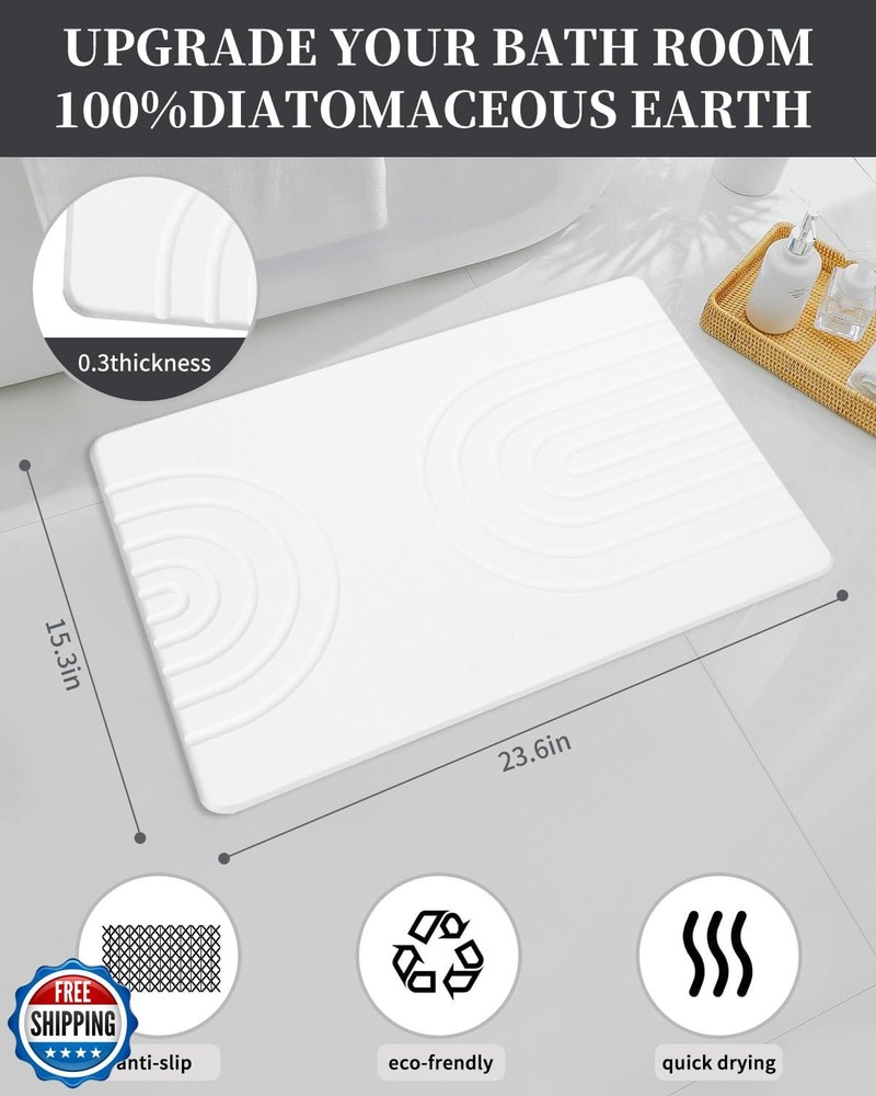 YOULTTAN Stone Bath Mat 24"x16" - Diatomaceous Earth Shower Mat, Quick Dry, Anti-Slip, Easy Clean, Modern Design with Bonus Non-Slip Pad - Perfect for Home Safety and Style, White Semicircle Features Super Absorbent & Quick Drying: Experience unparalleled comfort with YOULTTAN's Diatomaceous Earth Bath Mat. Its high absorbency quickly wicks away moisture, ensuring your floor stays dry and safe. Eco-Friendly & Easy to Clean: Crafted from natural diatomaceous earth, our bath mat is not only gentle on the environment but also incredibly easy to maintain. Simply wash under running water or wipe with a damp cloth to keep it looking new. Anti-Slip Safety: Engineered with your safety in mind, this mat features a non-slip surface that prevents accidents, making it a perfect choice for families with kids or elderly members. Sleek & Stylish Design: Complement your bathroom decor with our elegantly designed mat. Available in a versatile size of 24"x16", it's the perfect blend of functionality and style. Long-Lasting Durability: YOULTTAN's commitment to quality means you get a bath mat that stands the test of time, offering exceptional durability without compromising on comfort or performance. Shipping Free & Fast Shipping: We offer free shipping to most of the USA with a normal delivery time of 3-7 days. However, due to the current situation, additional delivery time (up to 3 weeks) may be required for some items. Alternative Carriers: We may use alternative carriers (e.g., USPS, FedEx, UPS) to ensure your package arrives safely and on time. Due to the use of multiple carriers, we are unable to provide a tracking number automatically. Handling Time: Orders are processed and shipped within 1-2 business days of receiving cleared payment. Shipping Restrictions: Shipping to Alaska, Hawaii, Puerto Rico, Guam, and other US territories may incur shipping charges or delivery restrictions. Please contact us before ordering, or your order can be refunded/cancelled. State Restrictions: Certain items may not be shipped to California due to state regulations. Contact for Tracking Updates: If you require tracking updates or have any concerns about the delivery of your order, please feel free to contact us, and we will be happy to assist you. Return Policy 30-Day Hassle-Free Returns: If you are not completely satisfied with your purchase, you can return the item for free within 30 days of receiving it for a full refund or exchange. Easy Return Process: Contact us, and we will provide you with a prepaid return shipping label and detailed instructions. No Restocking Fee: There are no restocking fees for returns. However, the buyer is responsible for return shipping costs if the return is not due to a seller"s error. Refund Processing: Refunds will be processed within 1 business day of receiving the returned item in its original condition. Feedback Your feedback is extremely important to us. We strive to provide the best products and customer service possible. If you are satisfied with your purchase, please take a moment to leave us a positive review. If you have any concerns or issues with your order, please contact us before leaving negative feedback. We are committed to resolving any problems and ensuring your satisfaction. Contact Us If you have any questions or concerns, please feel free to reach out to our customer support team. You can contact us through the eBay messaging system. We are available Monday to Friday, 9:00 am to 5:00 pm EST, and we will do our best to respond to your inquiry within 24 hours. Thank you for supporting our small family business!