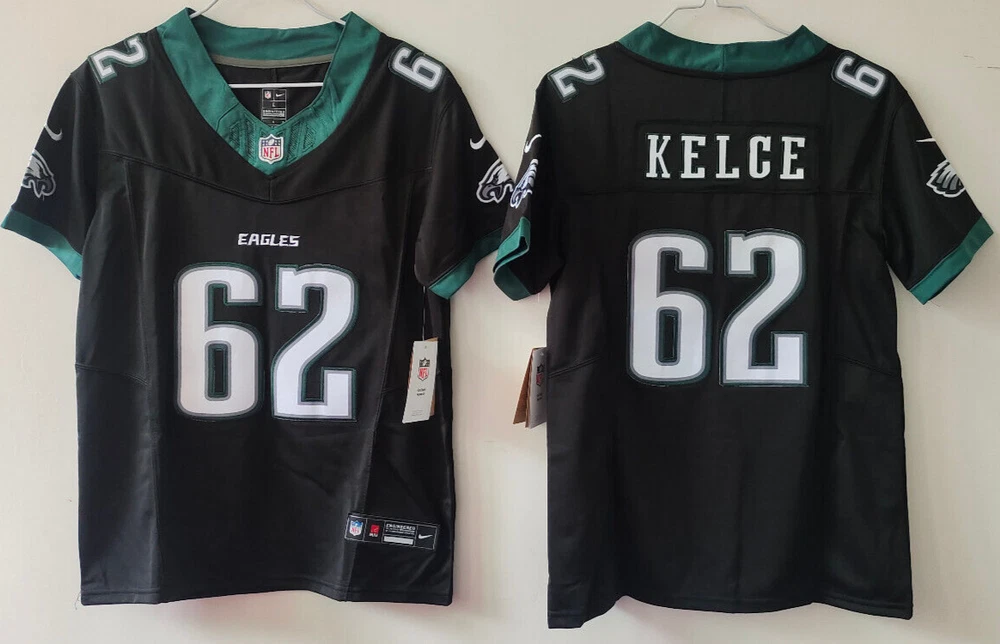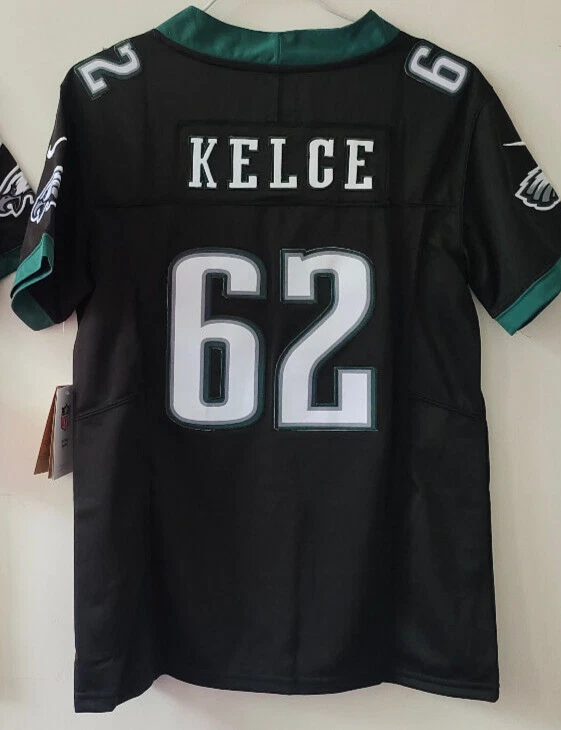 YOUTH Jason Kelce #62 Eagles FUSE Black Sewn Stitched Jersey. Brand New And Never Worn. Stitched Letters And Numbers. ***LISTING IS FOR YOUTH SIZE JERSEYS, NOT MEN'S*** Regular fits for Youths Size Small- size 8 (armpit 16' long 23') Medium- size 10-12 (armpit 17' long 24') Large- size 14-16 (armpit 18' long 25') XL- size 18-20 (armpit 19' long 26') Please Note: This jersey is NOT the authentic Jersey the players wear on the football field on game day. This is a replica jersey and it's as close to the real thing you can get but without the hefty price tag. Wear it proudly and support your team. *** NOTICE: Processing/handling time is 3 business days.*** Plus approximately 8-10 business days for delivery. For a total of about 10-15 business days, VIA USPS. *** If you cannot accept this timeline, please do not place the order, Thank you.***