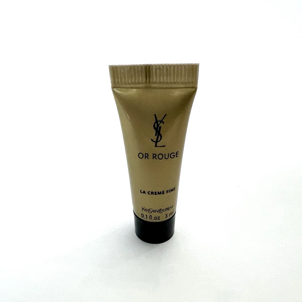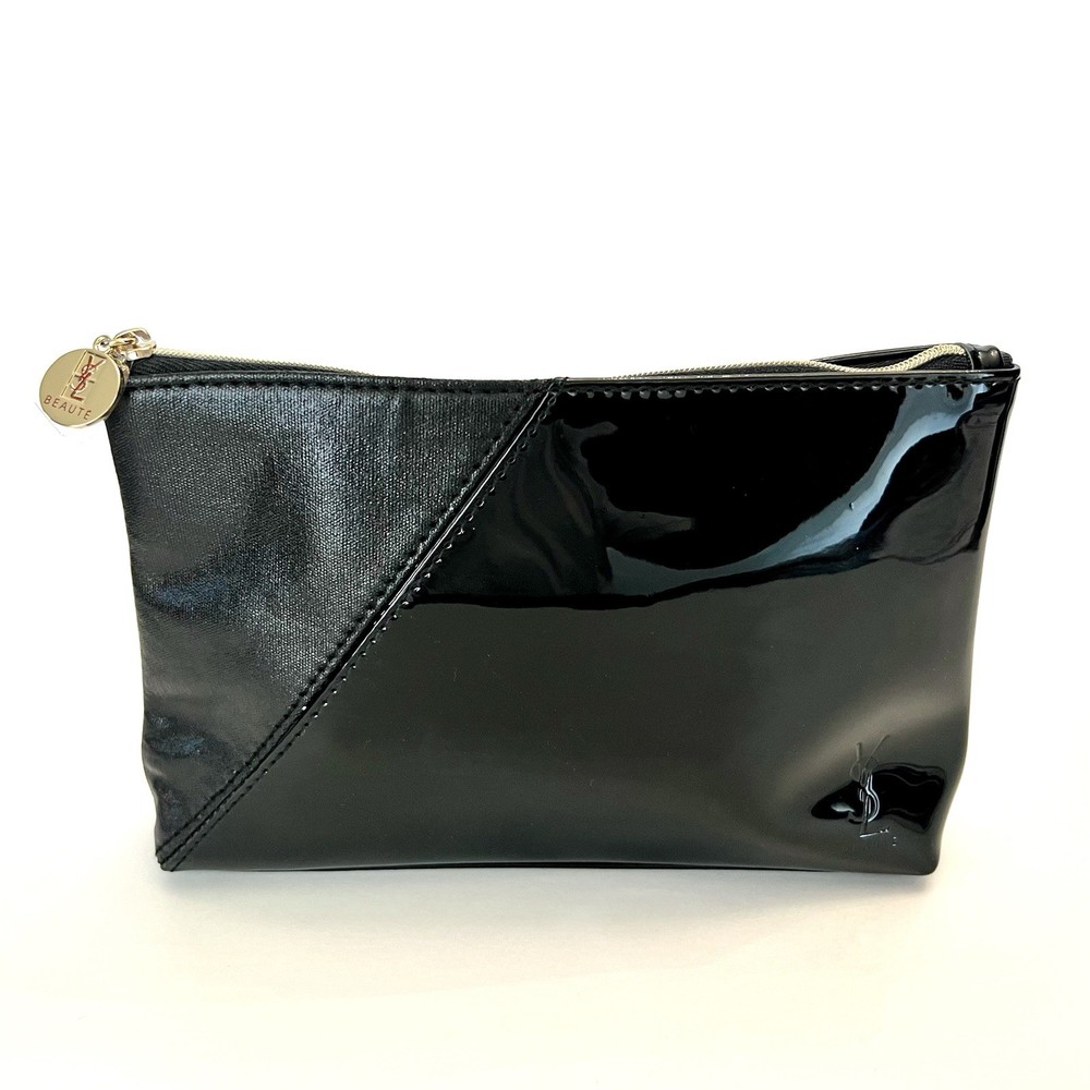 This eBay listing is for 1 black makeup bag from Yves Saint Laurent. Inside the bag are the following contents: 1 Tatouage Velvet Cream (.1 fl.oz.) 1 YSL OR Rouge Creme Fine (.1 fl.oz.) 1 YSL mascara The Curler (.06 fl.oz.) 1 YSL Touche Éclat Blur Primer (.33 fl.oz.) 1 YSL Libre Eau de Parfum sample spray (.11 fl.oz.)