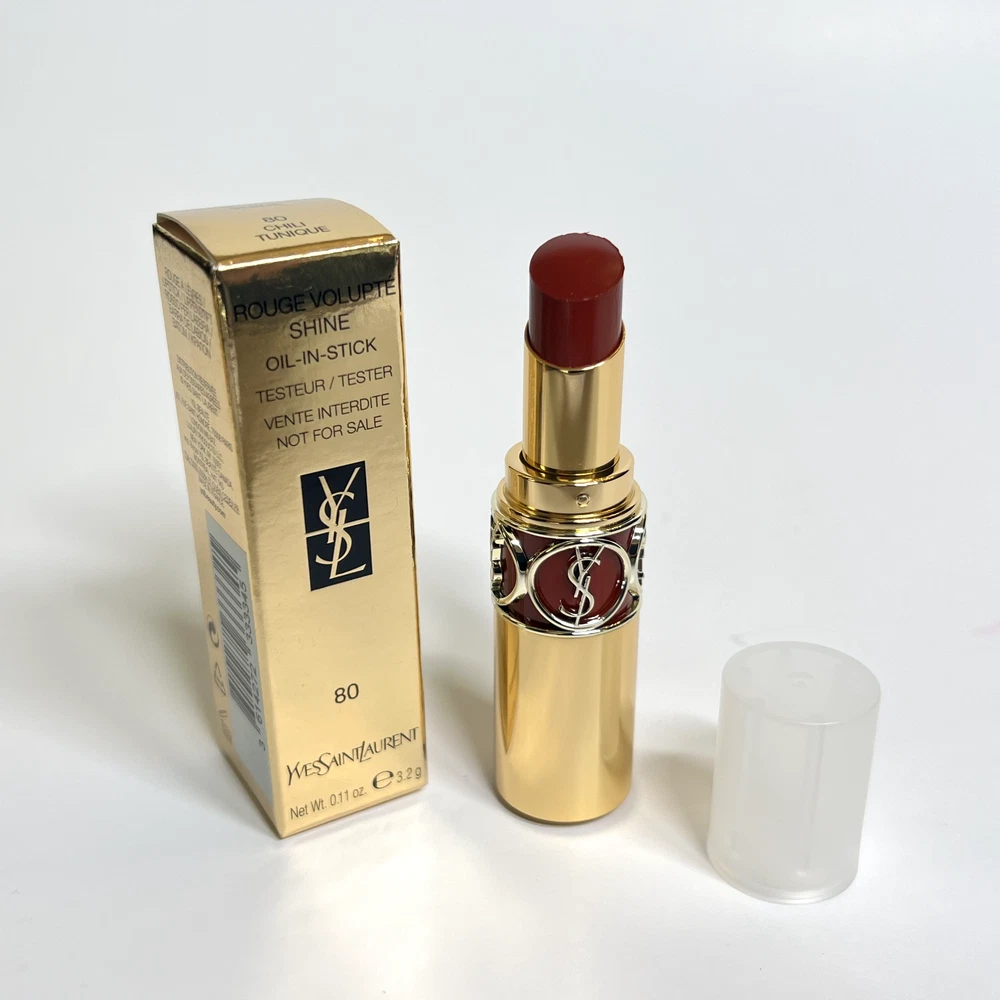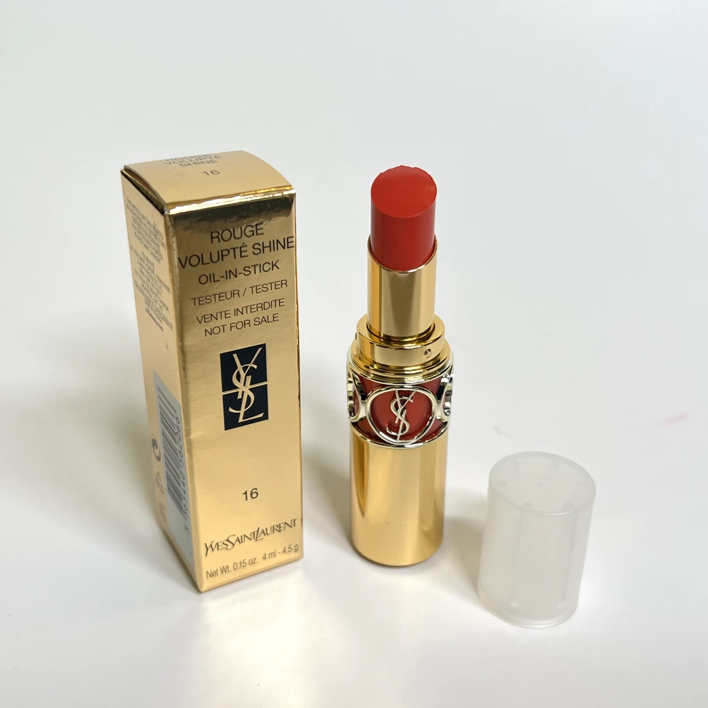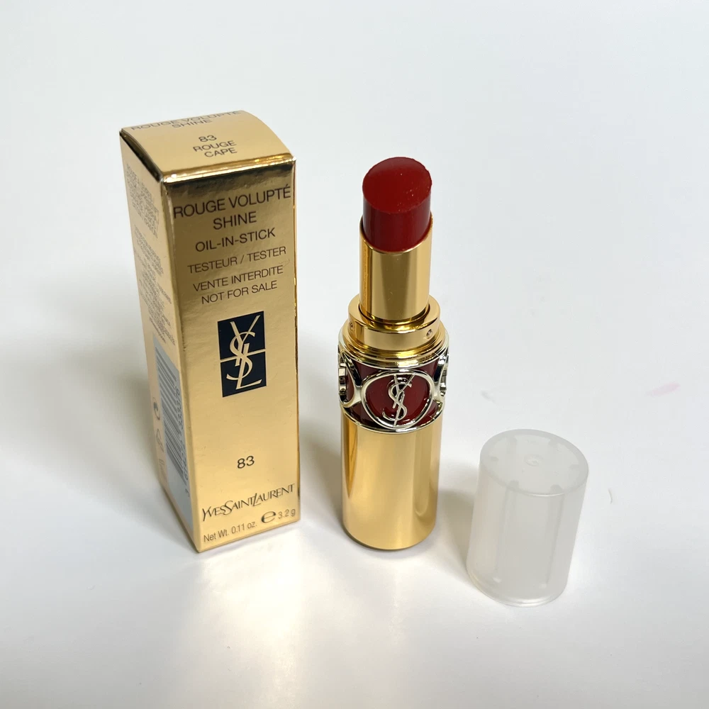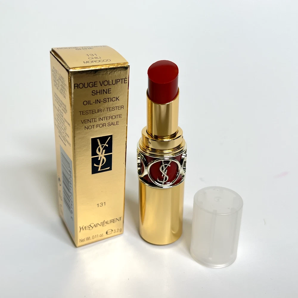 This eBay listing is for 1 YSL Rouge Volupté Shine (RVS) Oil-In-Stick lipstick, a brand new tester w/ plastic cap and no box. These have never been sampled or used. This lipstick has a unique formula that locks in moisture for up to 8 hours! Don’t get just one! I have them for very cheap because they all come with plastic caps and no boxes. Many great shades to choose from! PLEASE PICK YOUR SHADES FROM THE DROPDOWN MENU: #4 - Rouge Ballet #5 - Fuchsia Chiffon #14 - Corail Marrakech #15 - Corail Spontini #16 - Orange Majorelle #43 - Rose Rive Gauche #45 - Rouge Tuxedo #79 - Coral Plume #80 - Chili Tunique #81 - Coral Aviator #82 - Orange Crêpe #83 - Rouge Cape #84 - Red Cassandre #85 - Burgundy Love #87 - Rose Afrique #88 - Rose Nu #90 - Plum Tunique #131 - Chili Morocco Thank you so much!