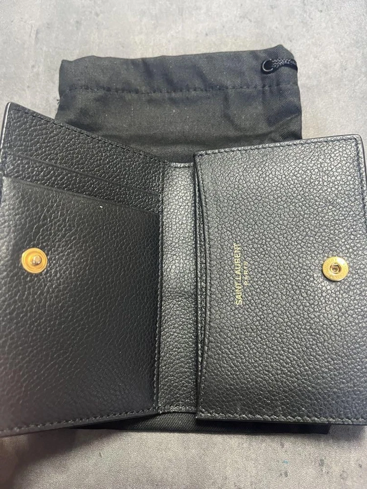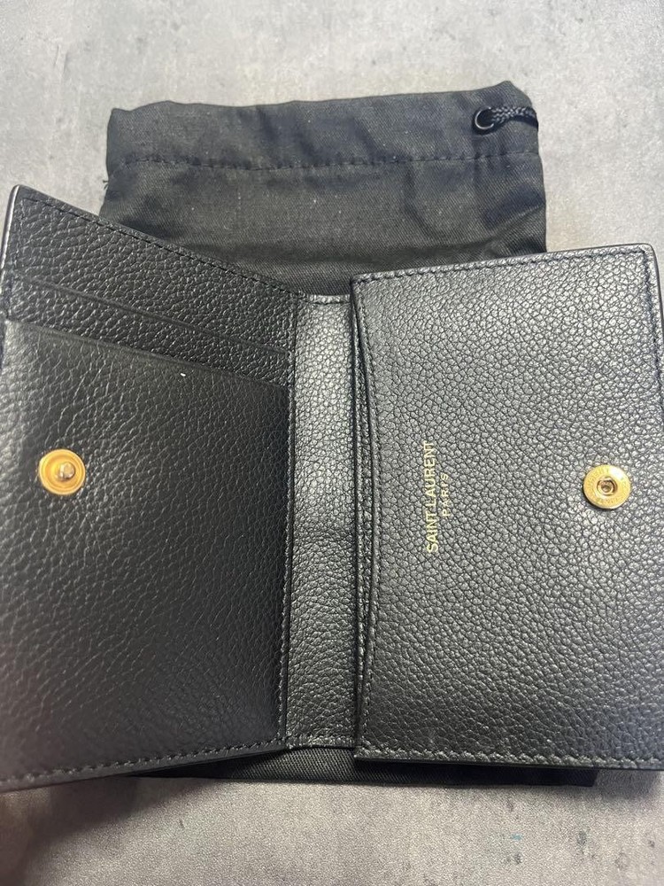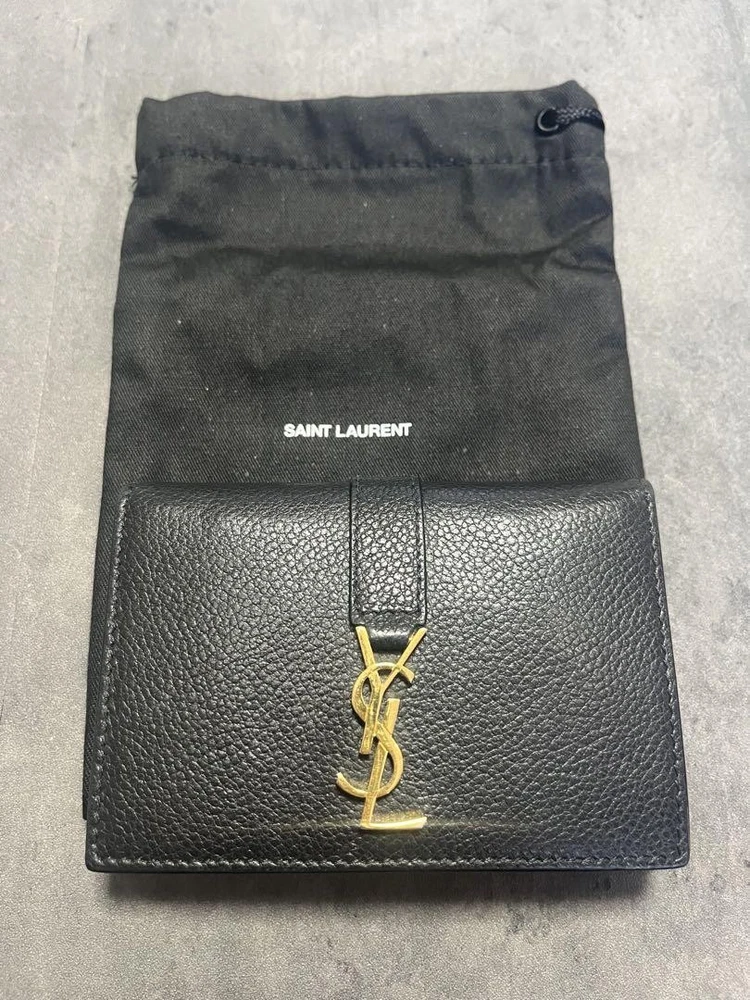 Saint Laurent Bi-fold Card Holder Wallet Case Flap Purse Compact YSL Cassandra Description Brand: Saint Laurent Color: Black Material: Leather Size: - Width: 11cm / 4.3in - Height: 8cm / 3.1in - Depth: 2.5cm / 1.0in Condition: Good, minor scuffs from light use All of Items Will be Shipped From Japan. Please check with the image. About the condition Damages such as stains, scuffs, and scratches are listed only if they are noticeable. Please understand that this is a used item, so there may be some inconspicuous scuffs or signs of use even if they are not listed. Please note that there may be unnoticeable scuffs and scratches on the item even if they are not listed. Please check the images for details of the condition. Note: This is a used item. We have tried to describe the condition of the item with detailed pictures and text as much as possible, but please understand that there may be some things that we have overlooked because it is a used item. Please note that measurements are taken by our company, so please understand that there may be some errors. If there is no special description about the accessories, only this item will be included. Colors may look different from the actual item depending on your monitor and shooting environment. Payment Please pay within 7 days of first purchase. ebay payments We can not separate invoice. Please understand. Shipping&Handling ■Speedy Shipping Shipped by DHL, FedEx, or Japan Post with tracking number. *If your location is designated as remote, additional shipping charges may apply. (Some areas such as Australia, Canada, Chile, and remote areas of the U.S.) I will pack it carefully. ■Economy Shipping (Japan Post) Economy Airmail 15-40 days without tracking Additional shipping fees may apply for countries/areas where delivery by Japan Post is not available. Handling Time Please check the categories of Shipping and payments. International Buyers - Please Note: Import duties, taxes, and charges are not included in the item price or shipping cost. These charges are the buyer's responsibility. Please check with your country's customs office to determine what these additional costs will be prior to bidding or buying. If you have any questions about products, shipping, etc., please do not hesitate to contact us by message. Thank you for your understanding.