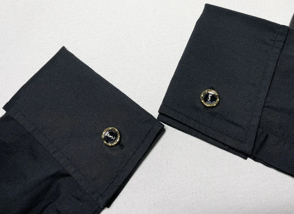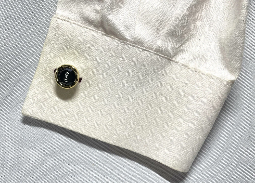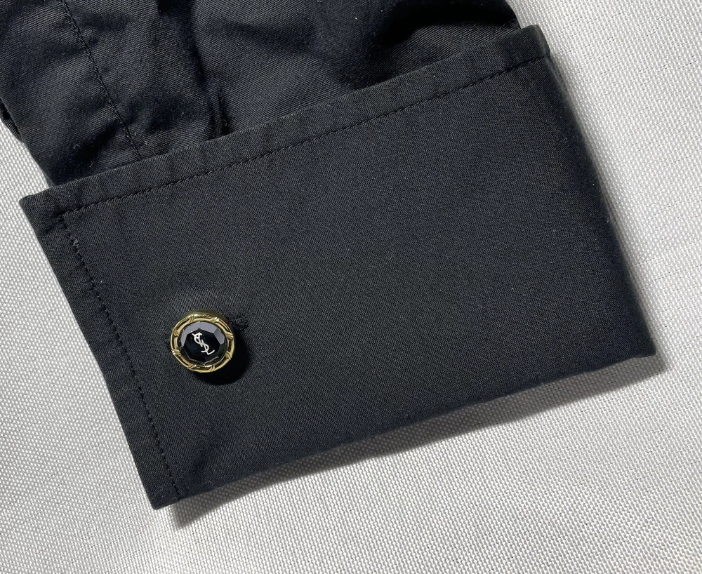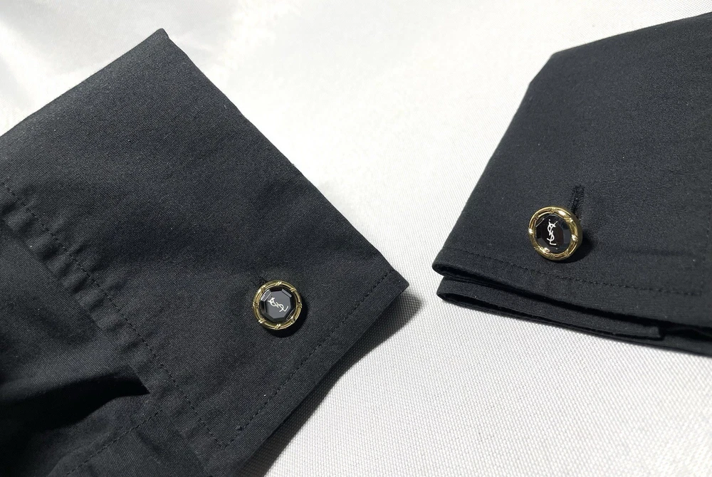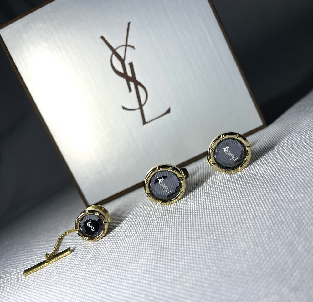 YSL Yves Saint Laurent gold black cufflinks Titanic pin brooch logo