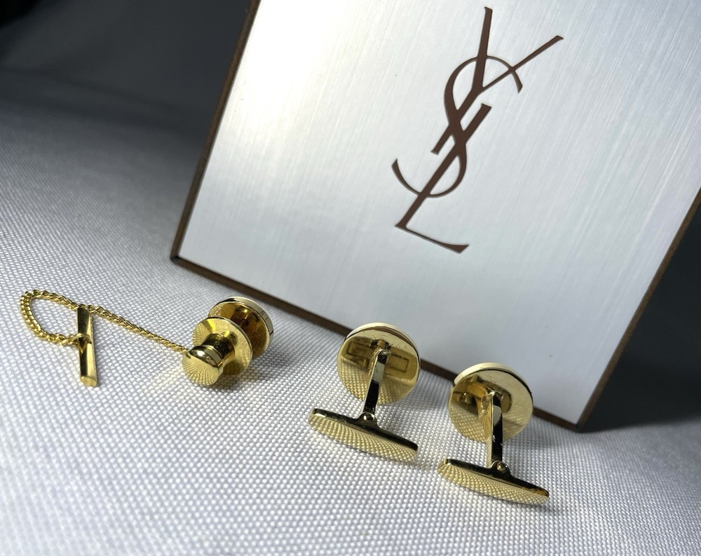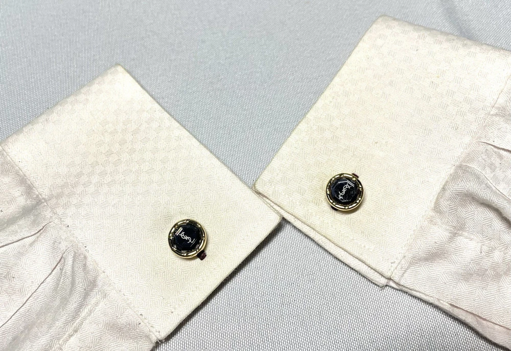 Features: NA MPN: NA Jewelry Department: Fashion Base Metal: NA Colored Diamond Intensity: NA Style: NA Ethnic & Regional Style: NA Seller Warranty: NA Number of Diamonds: NA Type: Cufflinks Main Stone Length: NA Theme: NA Antique: Yes Brand: Yves Saint Laurent Main Stone: NA Metal: NA Secondary Stone: NA Main Stone Creation: NA Main Stone Treatment: NA Cut Grade: NA California Prop 65 Warning: NA Color: Gold Vintage: Yes Total Carat Weight: NA Main Stone Width: NA Country of Origin: NA Era: NA Main Stone Shape: NA Main Stone Color: Black Diamond Clarity Grade: NA Certification: NA Department: Men Item Length: NA Number of Gemstones: NA Main Stone Depth: NA Diamond Color Grade: NA Gemstone Clarity Grade: NA Shape: NA Occasion: NA Material: NA Country/Region of Manufacture: Unknown