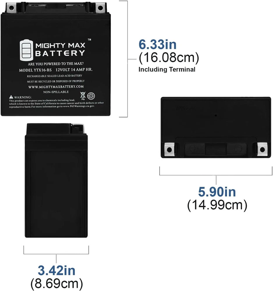 Store New Arrivals Add to Favorite View Feedback Contact YTX16-BS 12V 14AH Battery for Suzuki 750Cc LT-A750X King Quad 2008 Description Item model number YTX16-BS36 Item Weight 13 pounds Product Dimensions 5.9"D x 3.42"W x 6.33"H Country of Origin Thailand Manufacturer Part Number YTX16-BS36 Battery Cell Composition Sealed Lead Acid Item Weight 13 Pounds Terminal Bolt Terminal Wattage 1214 watts Vehicle Service Type Scooter Voltage 12 Volts Automotive Fit Type Universal Fit Model YTX16-BS36 Size Standard YTX16-BS is a 12V 14AH 230 Cold Cranking Amps (CCA) Sealed Lead Acid (SLA) Battery Dimensions: 5.90 inches x 3.42 inches x 6.33 inches. Polarity: Positive on left, Negative on right. Listing is for the Battery and Screws only. No wire harness or mounting accessories included. SLA / AGM spill proof battery has a characteristic of high discharge rate, wide operating temperatures, long service life and deep discharge recover. Rechargeable battery that can be mounted in any position, resists shocks and vibration. Long lasting high performance in high and low temperatures. Full One Year Product Description ABOUT US We offer the best prices around on high quality products. Our E-store includes media such as books, movies, music and games while offering electronics, toys, sporting apparel, clothing, tools, general home, garden items and more. SHIPPING We are always working hard to ensure your package arrives as soon as possible. Please understand that some factors like weather, high postal traffic, and the performance of shipping companies are outside of our control. We offer free shipping to the lower 48 states and ship within 2 business days of payment, usually sooner. We do not accept P.O. Boxes. Please provide a physical address. For shipping outside of the continental USA, we only use eBay's Global Shipping Program.The item is shipped to KY and then sent to the rest of the world. International customers are responsible for all duties and taxes. Continue to check out in order to calculate costs for shipping the item to your country. Messages regarding eBay's Global Shipping Program MUST be directed at eBay EXCLUSIVELY. RETURNS We offer a 30-Day Return Policy on items which you are not completely satisfied with. You have the option for a full-refund or an exchange of the item. No returns are available on items shipped outside of the USA. PAYMENT We accept PayPal. CONTACT US This page content is yet to come Please ad us to your favorite seller and visit again later Thank You CUSTOMER SATISFACTION We try our very best to make sure every customer is completely satisfied. If there's a problem, message us! We're happy to help. WE ACCEPT Copyright © 2021 AutoDS. | All Rights Reserved