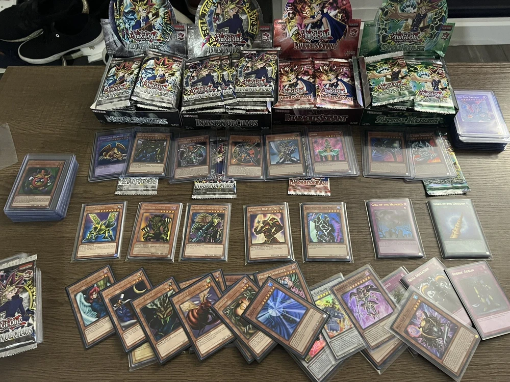 Yu-Gi-Oh! TCG Mixed Card Set - 200 Cards Featuring Popular Sets & Characters This Yu-Gi-Oh! Trading Card Game lot includes 1,000 cards from various iconic Yu-Gi-Oh! sets, offering a diverse mix of cards for players and collectors. This collection features cards from fan-favorite sets and includes characters like Yami Yugi, Seto Kaiba, and Yugi Muto. Popular Sets Included: Cards are pulled from a variety of Yu-Gi-Oh! sets, ensuring a well-rounded selection: • Legend of Blue Eyes White Dragon • Pharaoh’s Servant • Spell Ruler • Metal Raiders • Dark Crisis • Invasion of Chaos • And more beloved sets! Card Types Included: This set is perfect for deck building or enhancing your collection, featuring: • Spell Cards: Ritual, Normal, Quick-Play, Continuous, Field, and Equip • Trap Cards: Normal, Continuous, and Counter • Monster Cards: Effect, Normal, Flip, Spirit, Gemini, Tuner, Union, Fusion, Synchro, Xyz, Pendulum, Ritual, Toon, and Link Card Finish: Each set contains a mix of regular, holo, and foil finish cards to provide variety and excitement. Additional Details: • Suitable for players aged 6 and up • Perfect for casual play, building themed decks, or collecting cards from nostalgic sets Whether you’re looking to expand your Yu-Gi-Oh! set collection or dive into classic dueling action, this card lot is a must-have!