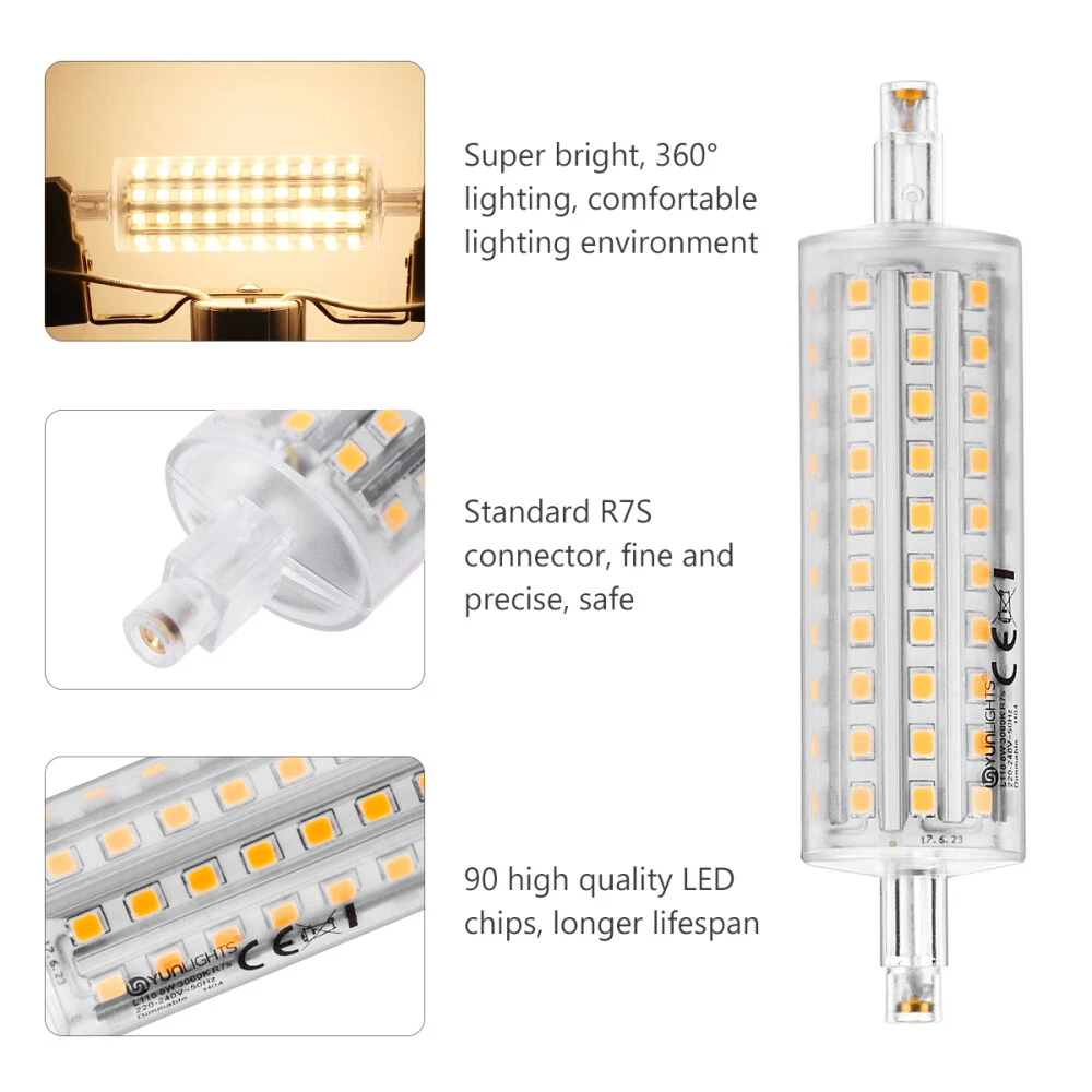 Related Hot Sale 2 Pcs Paper Towel Holder Telescopic Tissue Roll Retractable Stick Toilet Roller US $8.98 3PCS hair coloring bottle Barber Applicator Brush Hair Dye Brush Bottle US $10.44 3Pcs Box Latches Crossbody Bag Packing Buckles Luggage Locks Stainless Steel US $9.49 Anti Uv Hat Transparent Cover Full Sun Hat Anti-UV US $14.96 Jewelry Resin Silicone Casting Molds Christmas Ornament Christmas Resin Silicone US $10.43 Multipurpose Nappy Washable Elder Multifunction US $7.59 | Baby | | Books & Magazines | | Business & Industrial | | Cameras & Photo | | Clothing, Shoes & Accessories | | Collectibles | | Computers/Tablets & Networking | | Crafts | | Home & Garden | | Jewelry & Watches | | Cell Phones & Accessories | | Consumer Electronics | | Sporting Goods | | Toys & Hobbies | | Video Games & Consoles | | Health & Beauty | Product Description Collecting listings has surprises Description 360 Degree beam angle instant on full brightness, , good radiating, no radiation, . Used in floodlight replacement bulb, work and security lights, workshop lighting, stage and studio lamp, LED metal halide lamp, floor Lamps, household lighting, night lighting, advertising lighting. R7S light bulb, led light bulb, led corn light, led corn light bulbs, R7S Base LED Light Bulb Features - Color: As shown. - Material: PC - Size: 11.8 x 2.8 cm. - - : 118mm R7S LED bulb, emitting the brightness of 8W, save your electricity bill. - 360° Shining: No dead corner, no flicker, consistent and stable luminescence. - High Performance: Dimmable 5W consumption 50W equivalent 118mm double ended R7s floodlight halogen LED replacement bulb. - Wide : Great for garage, driveway, warehouse, barn, patio, courtyard , garden, street, office, school, hospital, , supermarket, station, restaurant, hotel, workshop etc, anywhere need bright light. Specifications - Socket: R7s - Voltage: - Total power: 8W - Lumen output: 600lm - Luminous efficiency: 75lm/w - Color temperature: 3000k - CRI: >80 - Power factor: >0.9 - Beam angle: 360° - Working life: 15000H - Dimmable: YES - LVD: YES - EMC: YES - RoHS: YES Package includes 1 x YUNLIGHTS R7S Base LED Light Bulb 8W Daylight Warm White 3000K LED Corn Light Bulbs for Indoor Outdoor Street Lamp Basement Garage Factory Warehouse Contact US 1.If you have some inquires or problems, Please feel free to contact us. 2.We will reply your email within 1 business day (except weekend). 3.When delivery is delayed or items are damaged during delivery, please email us first before you leave feedback. Thank you. People Who Viewed This Item Also Viewed Refrigerator Light Bulb Appliance 3W for Oven Fridge Replacement US $6.51 Farmhouse Industrial Barn Fixture Shade Enamel Lamp Shade US $16.69 lighting fixtures lamp for bubble Horseshoe Lampshade Chandelier Light Covers US $9.97 2 Pcs Chimney Lamp Clear Candle Holder Glass Light Shade Glass Light US $13.64 4 Pcs Shade Knob Zinc Alloy Lamp Knobs Metal Finial Ball Toppers US $7.09 LED lamp floor lamp shade 5x Flat Head Simple Household Replacement US $14.26 2Pcs Lamp Decor Crystal Ball Light Pendant Ceiling Fan Pull Chain Creative US $10.14 2pcs small white paper lampshade Hanging Lamp white chinese lanterns Covers Home US $12.06 Lampshade Frames Chandelier Iron Table Lampshade Frame Lampshade Frame US $27.44 ModernWear- resistant Lamp Shade Cloth Art Light Shade Pendant Cloth US $14.81 2 Pcs Oil Lamp Shades Glass Replacement Kerosene Lampshade Chimney US $17.31 Set 2 European Court Lampshade Victorian Lamp Shades Fringe Weave Shell US $51.5 Woven Lampshade Replacement Table Lamp Shade Cotton Rope Light Shade Rattan US $15.76 3 White Balalaika Strings - Sturdy Music Wire Set US $9.29 iron wire lamp shade replacement decorative ampshade Wire Lampshade Cage US $14.48 10 Pcs Crafts Making Supplies Plastic Decor Sheet Household US $15.68 wall chandelier light Clip Lamp Shade Bedside Lamp Glass Light Shade Hand US $17.28 4pcs ceiling fan light covers replacements lighting fixture shade plastic lamp US $13.83 Removable Lampshade Linen Exquisite Metal Support Light Tube US $15.58 Black Light Bulb E12 Socket 6Pack with Wire Connector US $10.18 Branch Tree Lights Decorative Goblincore Room Holiday up Twigs Chandelier Vase US $8.99 3D Crystal Statue Led Light Base for 3d Crystal Lighted Base for Glass Art v US $11.03 10pcs Electricity Teaching Kit Lamp Light Socket Physics Experiment Light Holder US $10.21 Home Lighting Lamp Headboard Night Stand Lamps for Bed Clip US $12.65 On Nov 21, 2024 at 04:23:19 PST, seller added the following information: