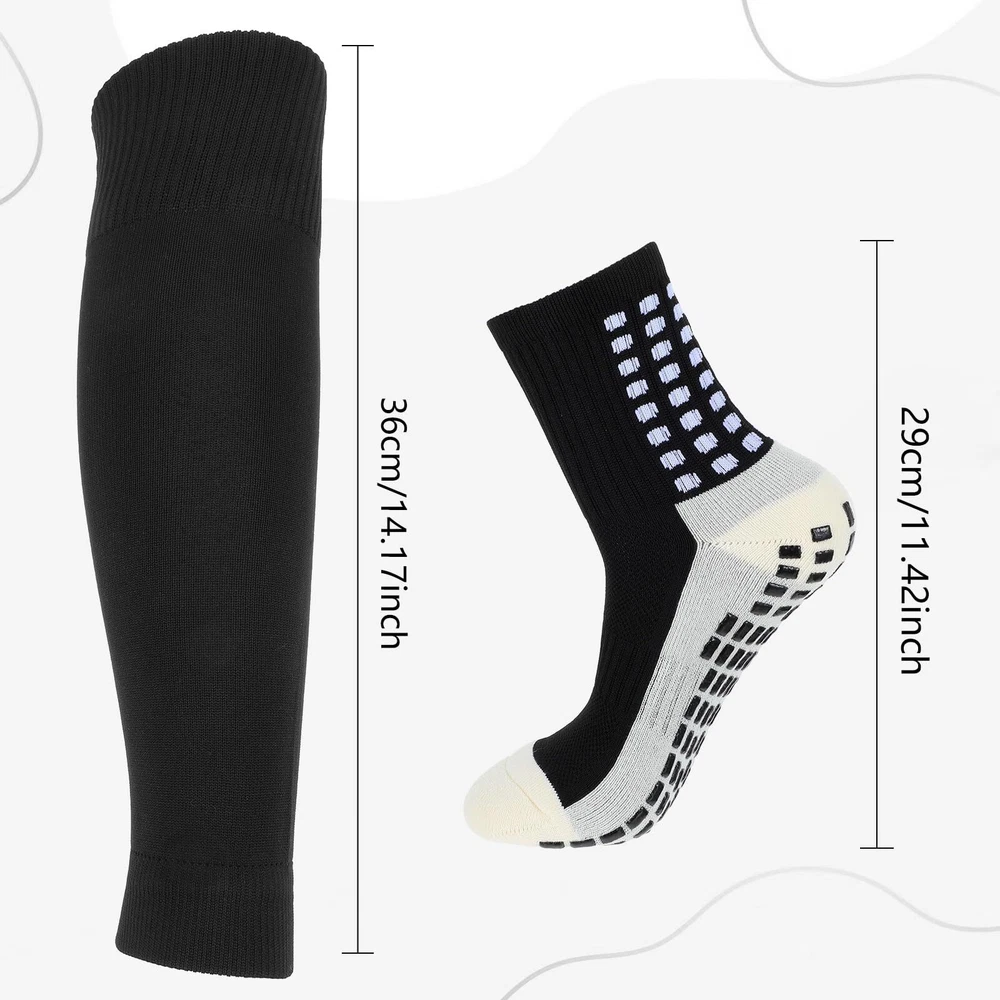 YUXIANLB Soccer Socks Grip Socks Soccer With Shin Guard Sleeves 1 Set Non Skid Shin Guards and Socks Set: The grip socks soccer socks set includes 1 pair socks and 1 pair shin guards. The size of the soccer socks are 29 cm/11.42 inches, and the size of the black soccer socks are 36 cm/14.17 inches. The grip socks soccer set has good elasticity and is one size fits all. Suitable for adult men and women Anti-slip Performance and Thickened Design: The bottom of this black grip soccer socks is equipped with anti-skid silica gel. The stripe structure can effectively fix the position of shoes and Socks, provide certain strength to prevent injury and improve the outbreak speed High Elastic Compression Design Leg Sleeves: The shin guard sleeves are made of moisture-wicking high-performance high elastic polyester, which soccer protections belt has stretchability ,resilience keeps your feet cool and comfortable to fit your leg curves. Durable shin guard sleeveslasting through numerous washes and no deformation Comfortable and Breathable Socks Set: In order to create a better wearing experience, the instep of the black sports socks adopts a large area of mesh design, can quickly discharge the sweat produced in the movement and keep the inside of the shoe fresh. The heel area is also reinforced and thickened to reduce shock and avoid fatigue,effectively protecting the feet Sports Use: The football sock and shin guard sleeves gradient compression design can effectively promote blood circulation in the legs, accelerate muscle recovery, and football leg wraps relieve discomfort during exercise. Shin guard straps are suitable for football, basketball, volleyball, lacrosse, skateboarding, running, yoga, cycling and other exercise activities and daily life Description Category: Socks Color: Black Material: Polyester Function: Shin guards, football protections belt Product size: Socks 29cm /11.42inches Band 36 cm/14.17 inches Packing list: 1 pair of socks 1 pair of protections belt Shipping We offer FREE shipping on all orders! We ship within Three business days of payment, usually sooner. We use a selection of shipping services such as UPS, FedEx, USPS etc. We only ship to the lower 48 states, no APO/FPO addresses or PO Boxes allowed. Local pickups and combined shipping options are not provided at this time. Return You can return a product for up to 30 days from the date you purchased it. Any product you return must be in the same condition you received it and in the original packaging. Please keep the receipt. Payment We accept payment by any of the following methods: PayPal Please pay as soon as possible after winning an auction, as that will allow us to post your item to you sooner! Feedback Customer satisfaction is very important to us. If you have any problem with your order, please contact us and we will do our best to make you satisfied. Contact Us If you have any queries, please contact us via ebay. We usually respond within 24 hours on weekdays. Please visit our eBay store to check out other items for sale! Thank you for shopping at our store.