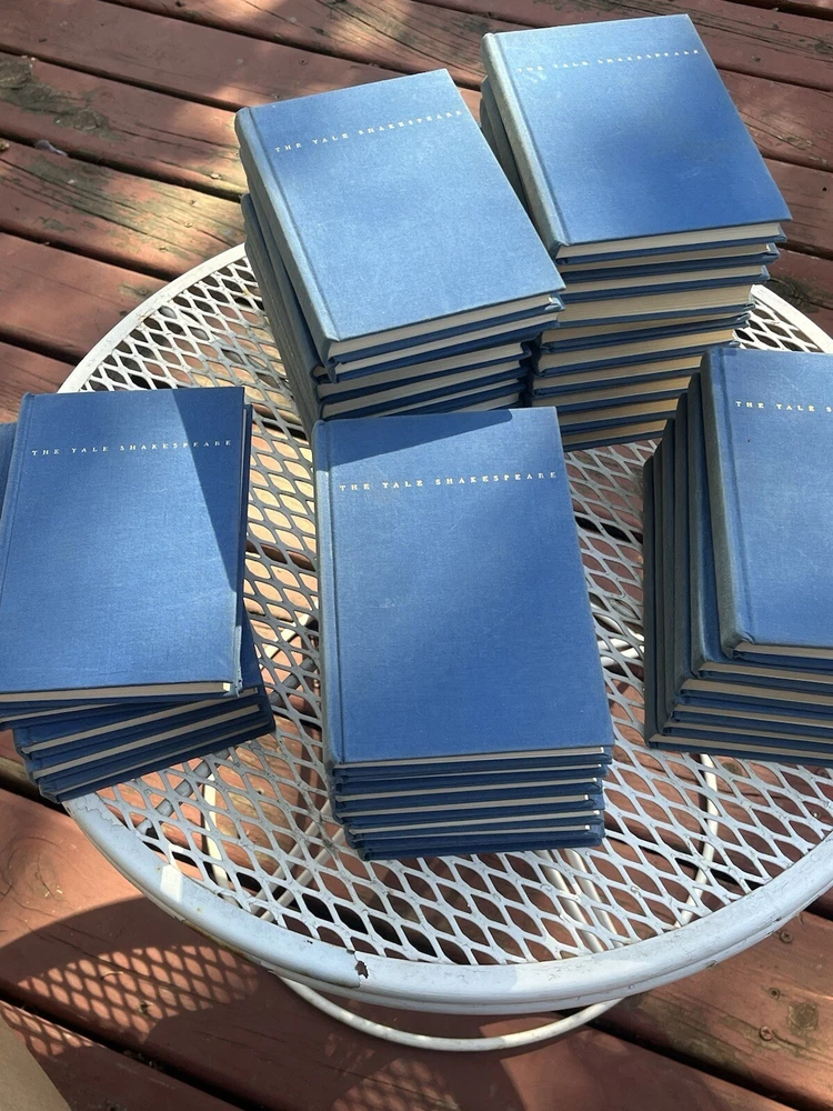 Yale Shakespeare Set Of 38 Books Many First And Second Editions Rare Gift Actor The books on the top of the pile are all the 1st editions This 38 volume set of The Yale Shakespeare is a must-have for any poetry and play enthusiast. The hardcover books are beautifully bound and come from the USA, making them a great addition to any collection. The set includes all of William Shakespeare's works, including the famous plays and poems. The publisher, Yale University Press, is known for its high-quality publications, making this set a great investment for anyone looking to add to their collection. The set is original and not a facsimile, making it a rare find for collectors. The subject of the set is children's literature, making it a great choice for anyone interested in this field. Finally, the set is categorized under Books & Magazines and Antiquarian & Collectible, making it a great choice for anyone interested in these areas