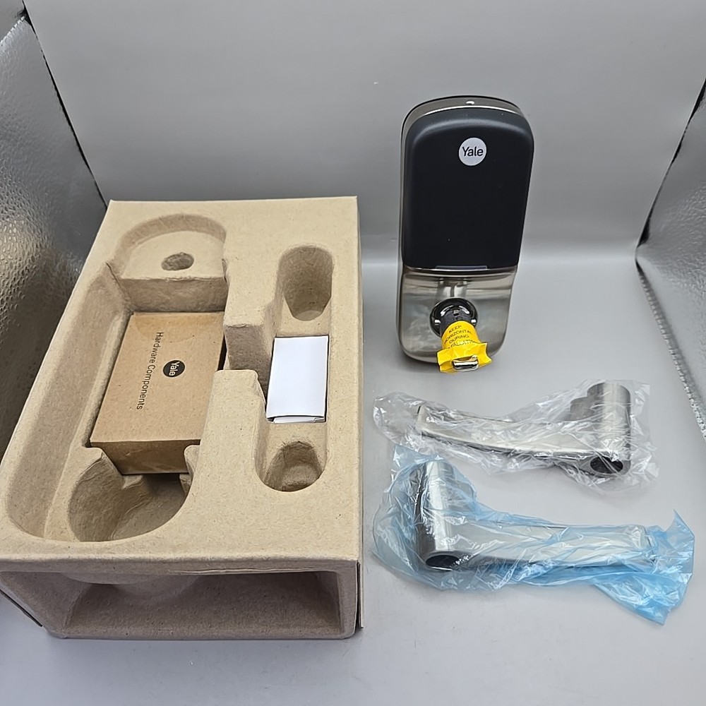 NEW Yale YRL216-ZW2-619 Keypad Deadbolt Door Lock With Key And Handles In Box, has all unused pieces in original box, can't see the battery door key but it may be in a sealed box, you can use any thin item to open it (I used a small screwdriver and it worked fine)
