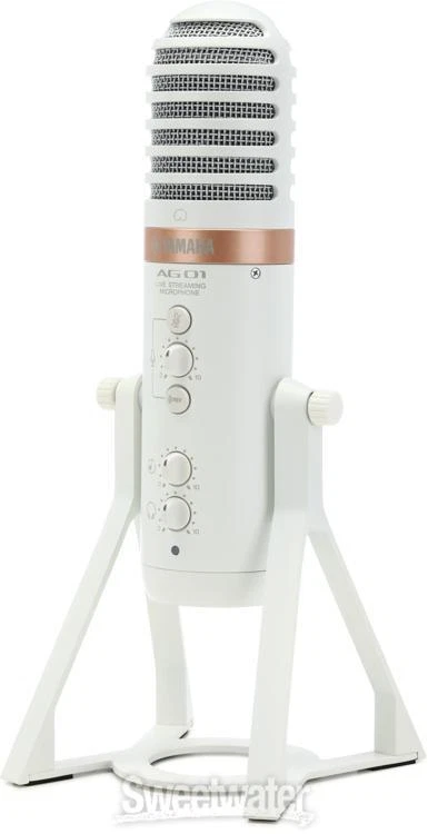 Full Streaming Suite — All from Your Mic With their AG series 3- and 6-channel mixers and USB interfaces, Yamaha has carved their own impressive niche in the realm of livestreaming. Now, they’ve unleashed the AG01 USB condenser microphone, a full suite of streaming options drawing directly from the capabilities of the AG series — all placed in one convenient spot. If you’re looking for a streamlined setup, then you only need to connect your headphones and a computer or an iOS/Android device, and you’re all set to stream. Of course, a host of onboard options grant you full control over your stream, including built-in DSP effects, a loopback function, a mixer, and additional input options. Additionally, you can pair your output with supplementary audio, all at stunning 24-bit/192kHz resolution.Loopback functionality for all-in-one streaming At Sweetwater, we understand that you are the most important part of your stream. Yamaha’s AG01 Sweetwater is an Authorized Yamaha Dealer Genuine New Item Sweetwater's 2-year warranty Yamaha AG01 Livestreaming USB Condenser Microphone - White Livestreaming USB Condenser Microphone, with Onboard DSP, Mixer, Loopback, and Flexible Input Connectivity - White Full Streaming Suite — All from Your Mic With their AG series 3- and 6-channel mixers and USB interfaces, Yamaha has carved their own impressive niche in the realm of livestreaming. Now, they’ve unleashed the AG01 USB condenser microphone, a full suite of streaming options drawing directly from the capabilities of the AG series — all placed in one convenient spot. If you’re looking for a streamlined setup, then you only need to connect your headphones and a computer or an iOS/Android device, and you’re all set to stream. Of course, a host of onboard options grant you full control over your stream, including built-in DSP effects, a loopback function, a mixer, and additional input options. Additionally, you can pair your output with supplementary audio, all at stunning 24-bit/192kHz resolution. Loopback functionality for all-in-one streaming At Sweetwater, we understand that you are the most important part of your stream. Yamaha’s AG01 condenser microphone is the ideal all-in-one streaming solution that saves you the stress of a complicated setup, thanks to its built-in loopback function. This allows you to incorporate external audio sources — via USB or one of the 1/8-inch, 4-pole mini jacks — alongside whatever is being picked up by your microphone, all into one stream. Loopback can be easily toggled and adjusted directly from the microphone, whether it’s music from your laptop/PC, mobile device, or even another mic. Onboard DSP lets your voice be heard, your way Streaming has become a ubiquitous activity, and it's more important than ever to strive for pro-level audio. The AG01 offers zero-latency DSP effects, including onboard compression, EQ, reverb, mute, and mic gain functionality. Because the AG01 is class compliant for iOS use, you can take even greater control of your audio arrangement. This is due to the AG DSP Controller app, which features “1 touch” and “expert” modes — both provide varying degrees of fine-tuning capabilities for all the onboard DSP effects. Furthermore, these can be applied to any supplementary audio, thanks to the AG01’s flexible input connectivity, sending out your stream at high-resolution, industry-standard 24-bit/192kHz quality. Yamaha AG01 Livestreaming USB Condenser Mic Features: Self-contained design lets you stream with a full suite of options right out of the box, with nothing more than a set of headphones and an Internet-connected computer or mobile device Condenser microphone ensures high-resolution audio at 24-bit/192kHz Built-in mixer keeps control close by and easily accessible USB connectivity means simple, immediate streaming with any laptop, PC, or iOS/Android device Zero-latency DSP effects provide quick, flexible control of compression, EQ, reverb, mute, and mic gain iOS class compliance grants even greater fine-tuning of DSP effects, thanks to the AG DSP Controller app Loopback functionality allows for full control and incorporation of supplementary audio, alongside microphone input Varied inputs include 1/8-inch, 4-pole mini jacks and USB, permitting additional audio from a computer, mobile device, or even another microphone Specification Detail Microphone Type Back Electret Condenser Polar Pattern Cardioid Frequency Response 30Hz-20kHz A/D Resolution 24-bit/192kHz Max SPL 110dB SPL Sensitivity -34dB ±3dB Color White Features Mute Button, Loopback Function Connector 2 x USB-C (host, 5V power), 1 x 1/8" TRRS (in/out), 1 x 1/8" (aux), 1 x 1/8" (headphones) Software AG Controller, Cubase AI, WaveLab Cast, Cubasis LE, Rec'n'Share Power Source USB bus powered / 5V USB power adapter (sold separately) Dimensions 11.1" x 4.6" Weight 2.6 lbs. Included Accessories USB Cable RETURN INFORMATION We want you to be completely happy with your purchase from Sweetwater. If you are not satisfied with your product, you may return it for a refund of the purchase price within 30 days. If your purchase was eligible for Free Shipping, the shipping cost will be deducted from your credit or refund. Returns must be in the complete and original packaging with all accessories and complete documentation (Owner's Manual, warranty card, quick start guides, etc.), show no signs of wear or use, and include a Return Authorization number or be subject to a restocking fee.