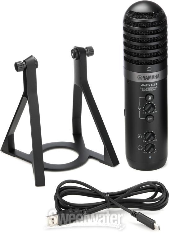 Full Streaming Suite — All from Your Mic With their AG series 3- and 6-channel mixers and USB interfaces, Yamaha has carved their own impressive niche in the realm of livestreaming. Now, they’ve unleashed the AG01 USB condenser microphone, a full suite of streaming options drawing directly from the capabilities of the AG series — all placed in one convenient spot. If you’re looking for a streamlined setup, then you only need to connect your headphones and a computer or an iOS/Android device, and you’re all set to stream. Of course, a host of onboard options grant you full control over your stream, including built-in DSP effects, a loopback function, a mixer, and additional input options. Additionally, you can pair your output with supplementary audio, all at stunning 24-bit/192kHz resolution.Loopback functionality for all-in-one streaming At Sweetwater, we understand that you are the most important part of your stream. Yamaha’s AG01 Sweetwater is an Authorized Yamaha Dealer Genuine New Item Sweetwater's 2-year warranty Yamaha AG01 Livestreaming USB Condenser Microphone - Black USB Condenser Microphone with Onboard DSP, Mixer, Loopback, and Flexible Input Connectivity - Black Full Streaming Suite — All from Your Mic With their AG series 3- and 6-channel mixers and USB interfaces, Yamaha has carved their own impressive niche in the realm of livestreaming. Now, they’ve unleashed the AG01 USB condenser microphone, a full suite of streaming options drawing directly from the capabilities of the AG series — all placed in one convenient spot. If you’re looking for a streamlined setup, then you only need to connect your headphones and a computer or an iOS/Android device, and you’re all set to stream. Of course, a host of onboard options grant you full control over your stream, including built-in DSP effects, a loopback function, a mixer, and additional input options. Additionally, you can pair your output with supplementary audio, all at stunning 24-bit/192kHz resolution. Loopback functionality for all-in-one streaming At Sweetwater, we understand that you are the most important part of your stream. Yamaha’s AG01 condenser microphone is the ideal all-in-one streaming solution that saves you the stress of a complicated setup, thanks to its built-in loopback function. This allows you to incorporate external audio sources — via USB or one of the 1/8-inch, 4-pole mini jacks — alongside whatever is being picked up by your microphone, all into one stream. Loopback can be easily toggled and adjusted directly from the microphone, whether it’s music from your laptop/PC, mobile device, or even another mic. Onboard DSP lets your voice be heard, your way Streaming has become a ubiquitous activity, and it's more important than ever to strive for pro-level audio. The AG01 offers zero-latency DSP effects, including onboard compression, EQ, reverb, mute, and mic gain functionality. Because the AG01 is class compliant for iOS use, you can take even greater control of your audio arrangement. This is due to the AG DSP Controller app, which features “1 touch” and “expert” modes — both provide varying degrees of fine-tuning capabilities for all the onboard DSP effects. Furthermore, these can be applied to any supplementary audio, thanks to the AG01’s flexible input connectivity, sending out your stream at high-resolution, industry-standard 24-bit/192kHz quality. Yamaha AG01 Livestreaming USB Condenser Mic Features: Self-contained design lets you stream with a full suite of options right out of the box, with nothing more than a set of headphones and an Internet-connected computer or mobile device Condenser microphone ensures high-resolution audio at 24-bit/192kHz Built-in mixer keeps control close by and easily accessible USB connectivity means simple, immediate streaming with any laptop, PC, or iOS/Android device Zero-latency DSP effects provide quick, flexible control of compression, EQ, reverb, mute, and mic gain iOS class compliance grants even greater fine-tuning of DSP effects, thanks to the AG DSP Controller app Loopback functionality allows for full control and incorporation of supplementary audio, alongside microphone input Varied inputs include 1/8-inch, 4-pole mini jacks and USB, permitting additional audio from a computer, mobile device, or even another microphone Specification Detail Microphone Type Back Electret Condenser Polar Pattern Cardioid Frequency Response 30Hz-20kHz A/D Resolution 24-bit/192kHz Max SPL 110dB SPL Sensitivity -34dB ±3dB Color Black Features Mute Button, Loopback Function Connector 2 x USB-C (host, 5V power), 1 x 1/8" TRRS (in/out), 1 x 1/8" (aux), 1 x 1/8" (headphones) Software AG Controller, Cubase AI, WaveLab Cast, Cubasis LE, Rec'n'Share Power Source USB bus powered / 5V USB power adapter (sold separately) Dimensions 11.1" x 4.6" Weight 2.6 lbs. Included Accessories USB Cable RETURN INFORMATION We want you to be completely happy with your purchase from Sweetwater. If you are not satisfied with your product, you may return it for a refund of the purchase price within 30 days. If your purchase was eligible for Free Shipping, the shipping cost will be deducted from your credit or refund. Returns must be in the complete and original packaging with all accessories and complete documentation (Owner's Manual, warranty card, quick start guides, etc.), show no signs of wear or use, and include a Return Authorization number or be subject to a restocking fee.