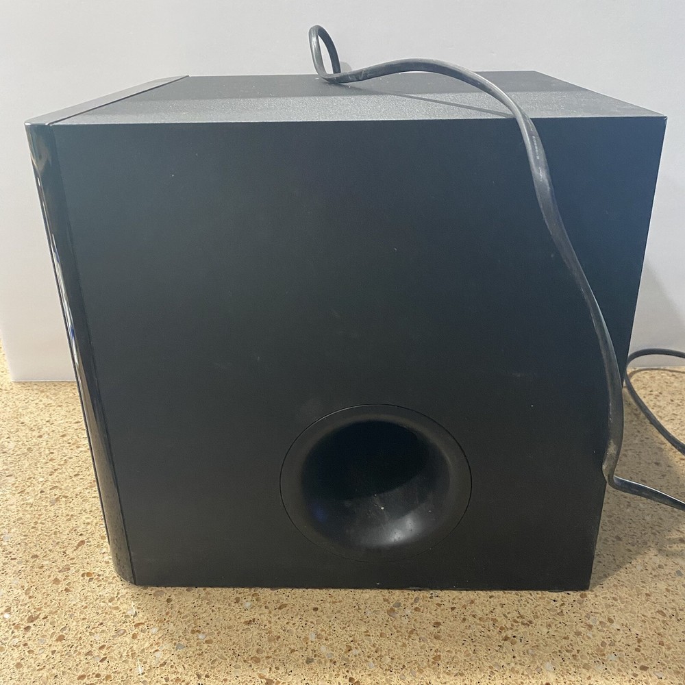 Subwoofer is part of a larger system. This is the subwoofer only. Will not work without the rest of the pieces that are compatible with this subwoofer. This is meant as a replacement subwoofer only. Tested and works. No original packaging or paper work. Power cord only. Please look at all photos.
