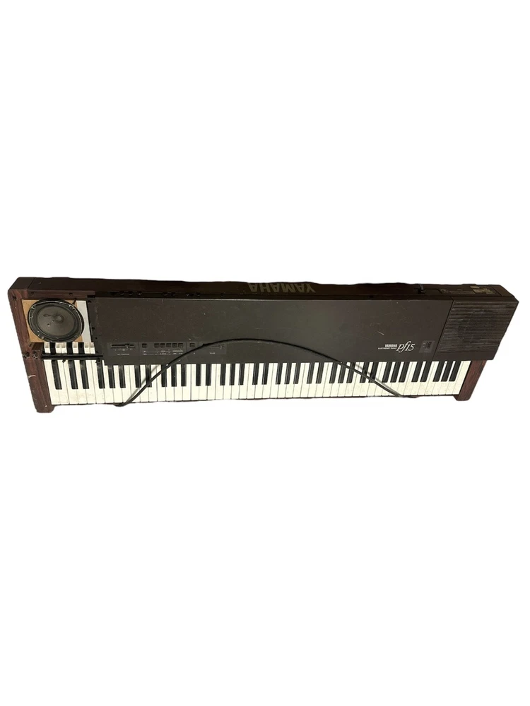 Lights comes on , no sound , possibly needs new speakers , (Untested) SOLD AS IS Launched in 1983, the PF15 was an 88-note digital piano with weighted and velocity-sensitive keys. It utilised the same FM system used in Yamahas DX range but designed for those in favour of the conventional acoustic piano feel This Yamaha PF15 Digital Piano is a vintage gem for any musician. With 88 keys and a beautiful brown color, it's the perfect addition to any home music studio. Manufactured in 1983, this digital home piano is a true classic. The brand Yamaha is known for producing high-quality musical instruments, and this digital piano is no exception. It's perfect for any level of musician, from beginners to experts. Whether you're a vintage piano collector or just looking for a unique instrument to add to your collection, the Yamaha PF15 Digital Piano is sure to impress.