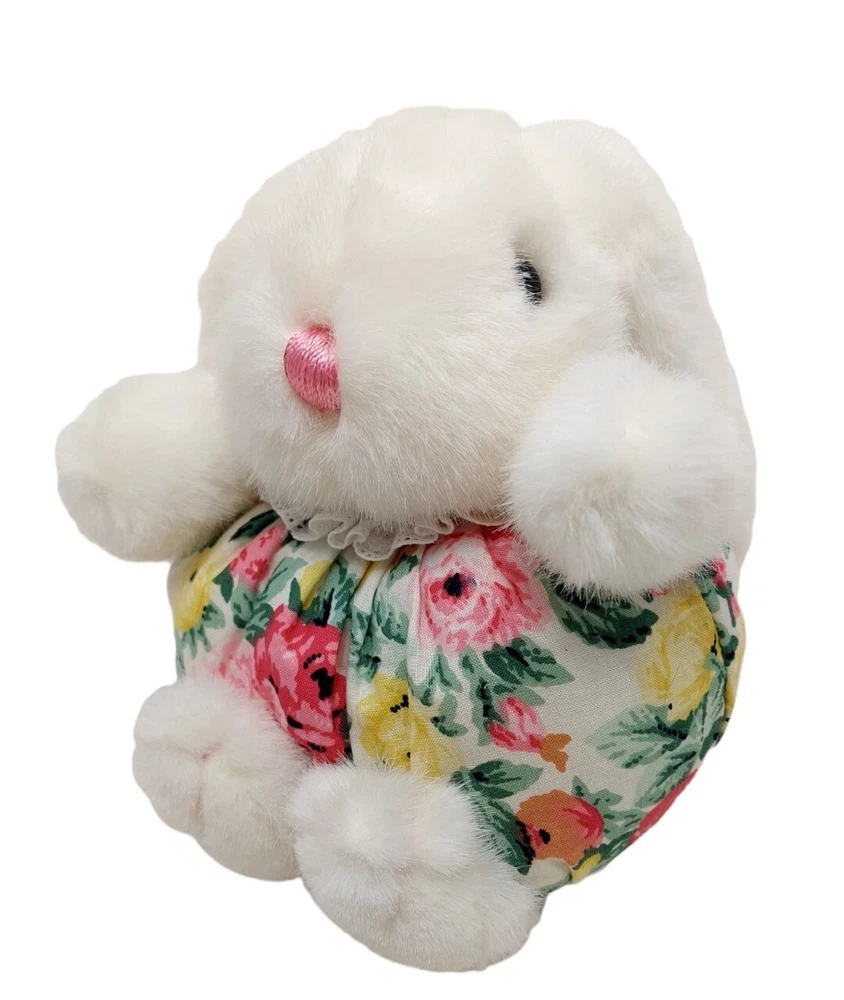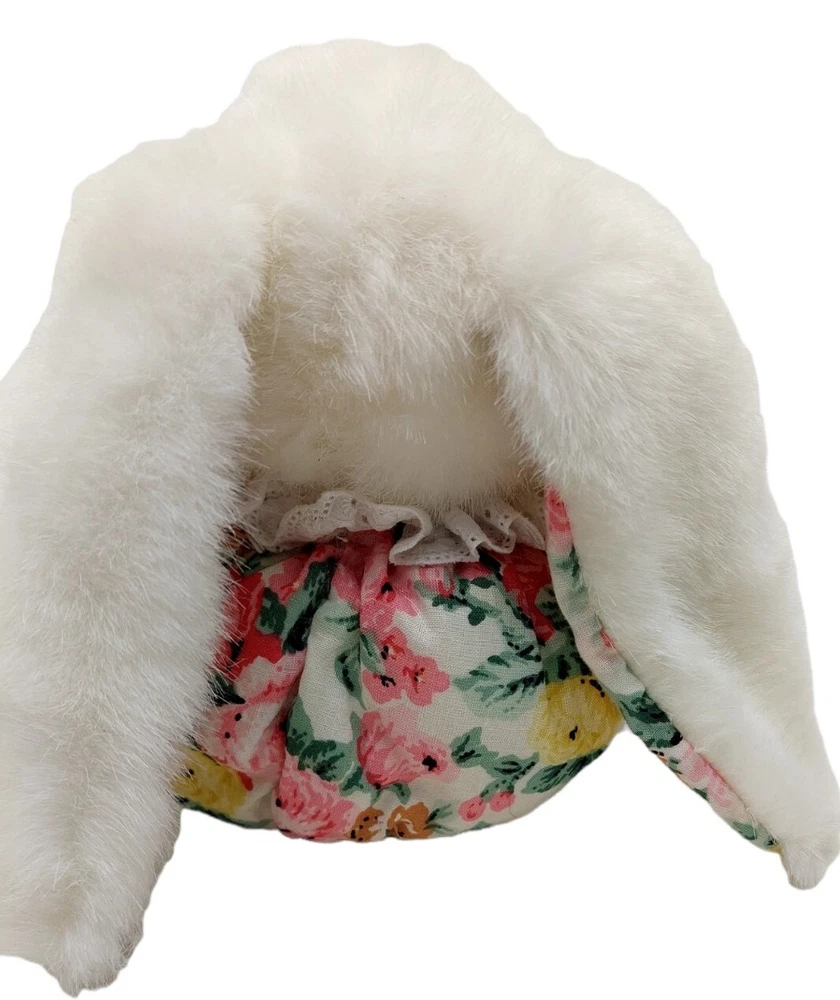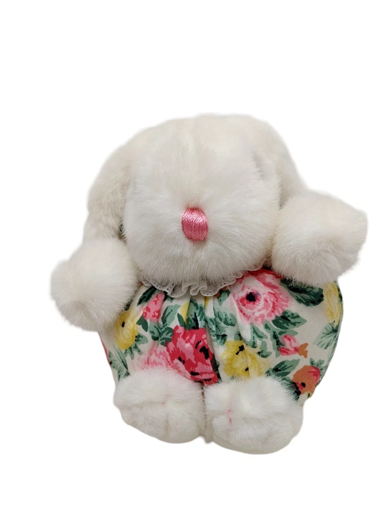 Yankee Bunny Rabbit White Plush Stuffed Animal Floral fabric body 6" Easter