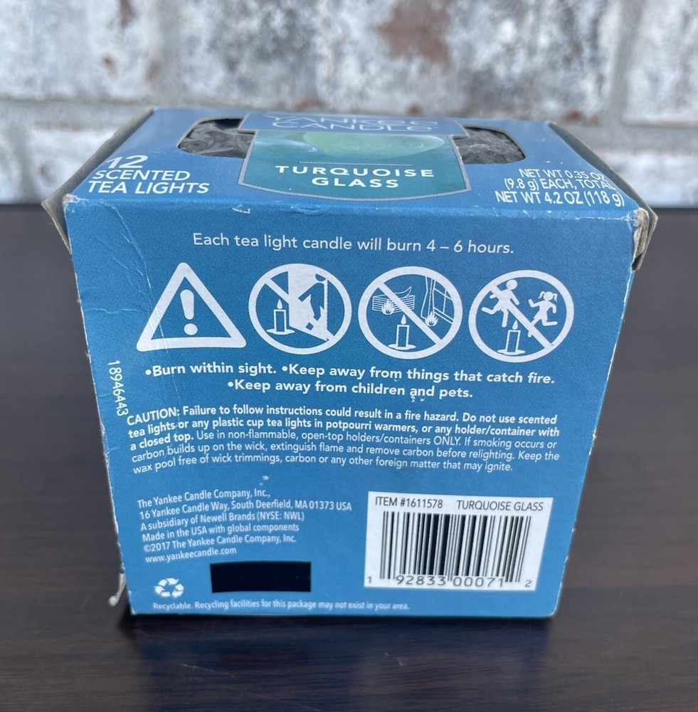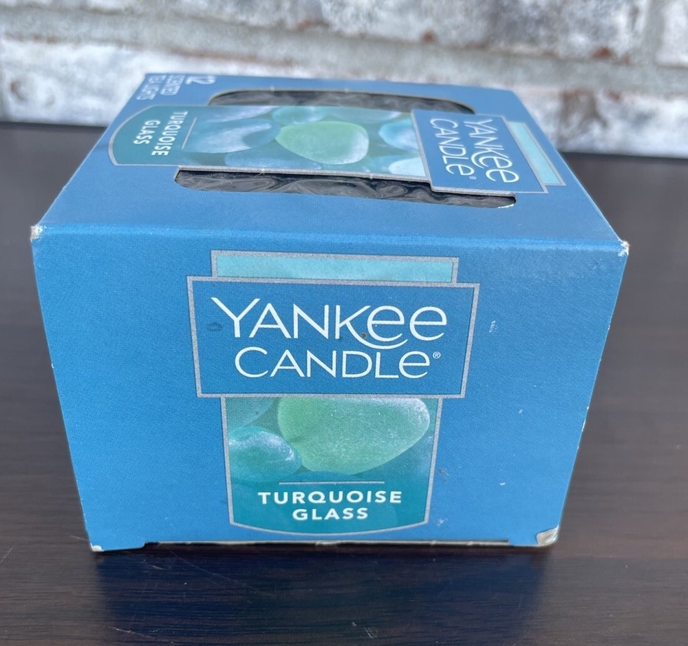 Yankee Candle 12 Scented Tea Lights ~Turquoise Glass~New Old Stock Open Box. Shipped with USPS Ground Advantage for 6.00.