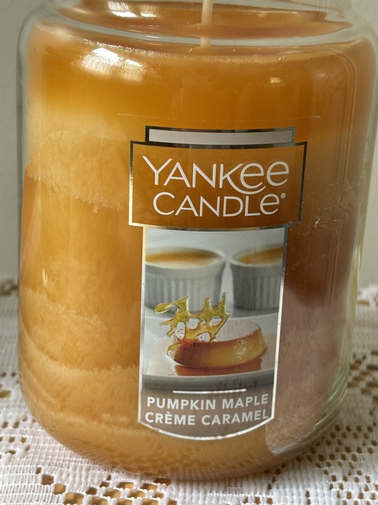 Retired Yankee Candle Pumpkin Maple Crème Caramel 22 oz. Glass jar candle new great scent! Smoke free home Any questions please email me before purchasing Please read entire description and examine all photos before purchasing I always combine shipping on multiple purchases