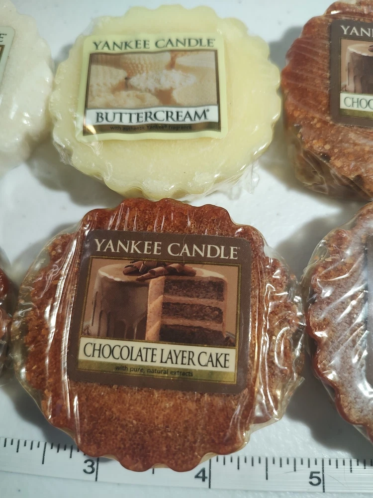 Yankee Candle lot of 6 wax tarts/melts. They have never been used and still are in the original packaging. The fragrances are: 4 Chocolate Layer Cake, 1 Sparkling Vanilla and 1 Buttercream. Please check out my other listings. I will combine shipping whenever possible. From my clean, smoke free home.