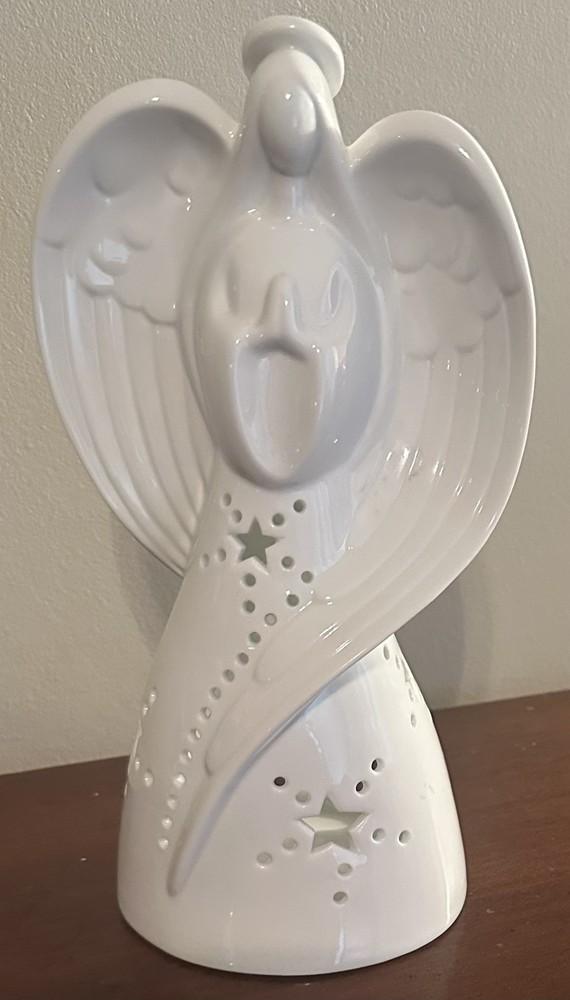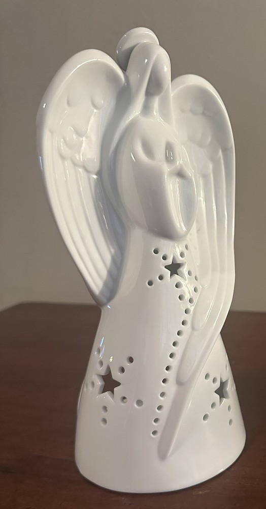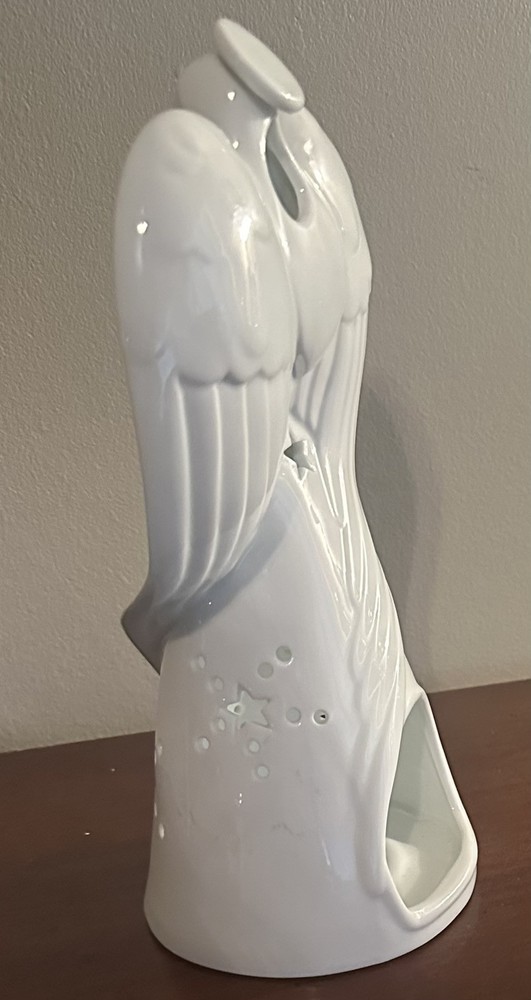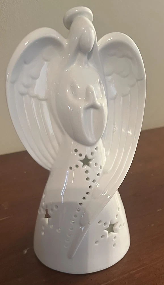 This beautiful Yankee Candle Angel Luminary Tea Light Holder is white porcelain standing at 9.25 inches tall. She is in excellent condition with no cracks, chips, or stains.