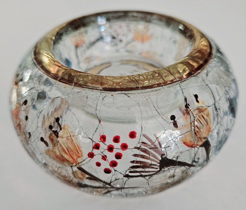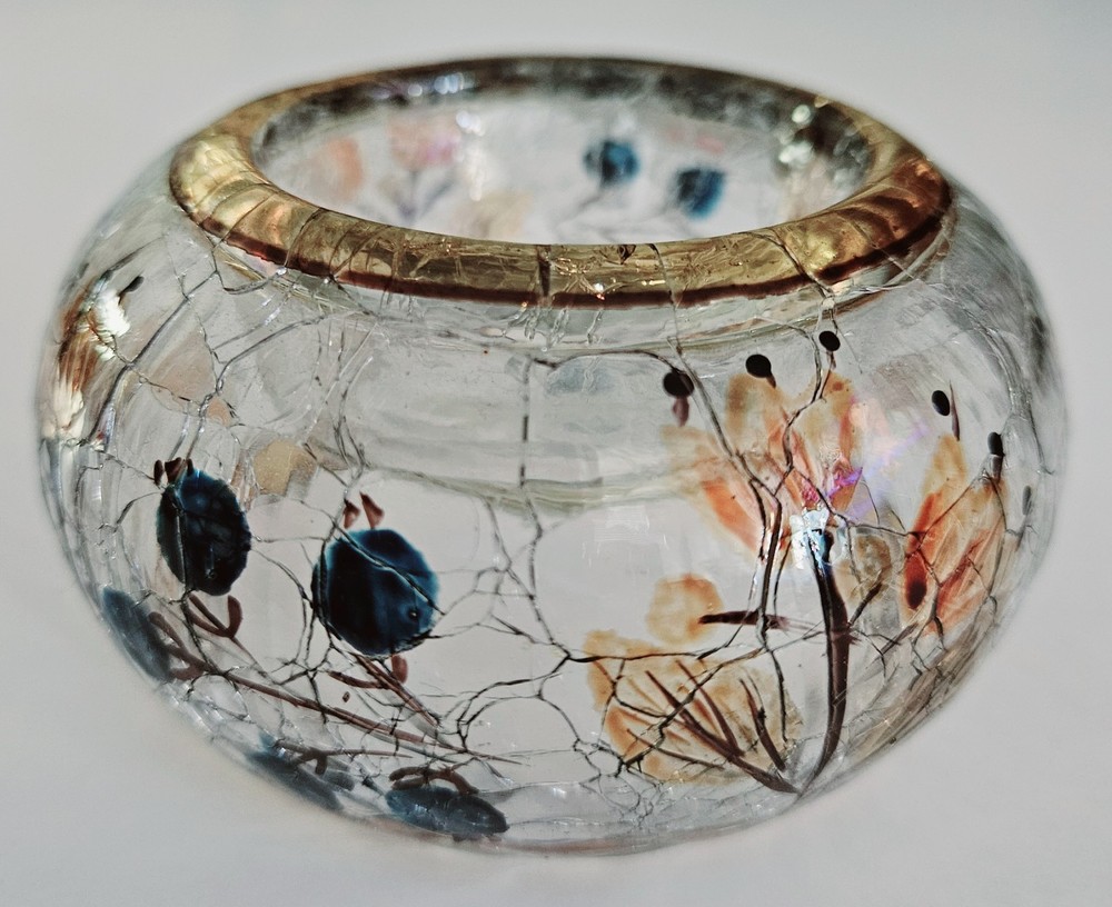 Yankee Candle hand painted autumn print crackle glass votive candle holder. 2"H x 4"W. No chips, cracks or damage. Excellent condition.