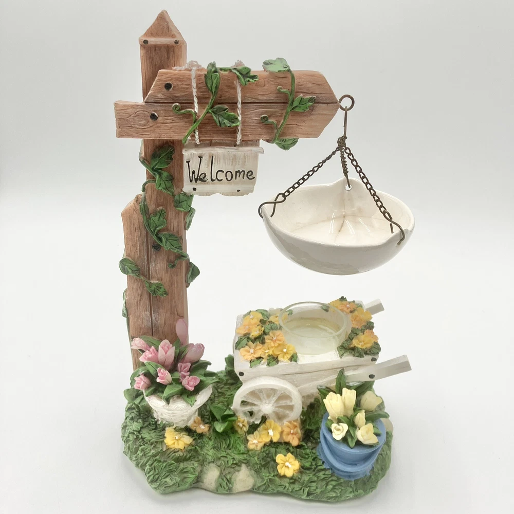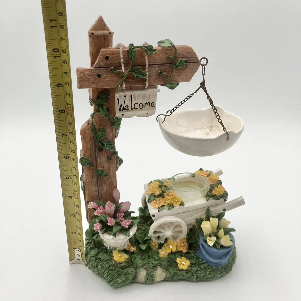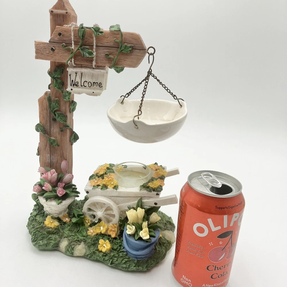 Elevate the ambiance of your living space with this beautiful Yankee Candle Floral Spring Welcome Garden Hanging Wax Warmer. The intricate floral pattern and multicolor design of this traditional style warmer/burner will add a touch of elegance to your home decor. Made of high-quality resin, it is suitable for wickless tart/bar and tea light. This rare piece is perfect for those who love flowers and spring/summer themes. The suitable for tea light and wickless tart/bar makes it a versatile addition to your home. Add this beautiful piece to your collection and enjoy the warmers/burners that will create a cozy atmosphere in any room of your home. CONDITION: The ceramic tart warmer holder itself has a hairline crack in center of warmer. It also has some crazing on interior and exterior of warmer. The decorative base itself has no damage. Please review photos where this is pointed out. ***SHIPS NEXT BUSINESS DAY***