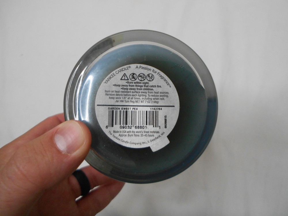 Custom Bundle: No Theme: Nature Features: Scented Shape: Jar Personalize: No Type: Jar/Container Candle Seller Notes: “barely used! See in photos!” Scent: Sweet Pea Country/Region of Manufacture: United States Size: Medium UPC: 609032002794 Room: Any Room gtin13: 609032002794 Material: Paraffin Wax Color: Blue Model: Yankee Candle Garden Sweet Pea Brand: Yankee Candle Style: Traditional