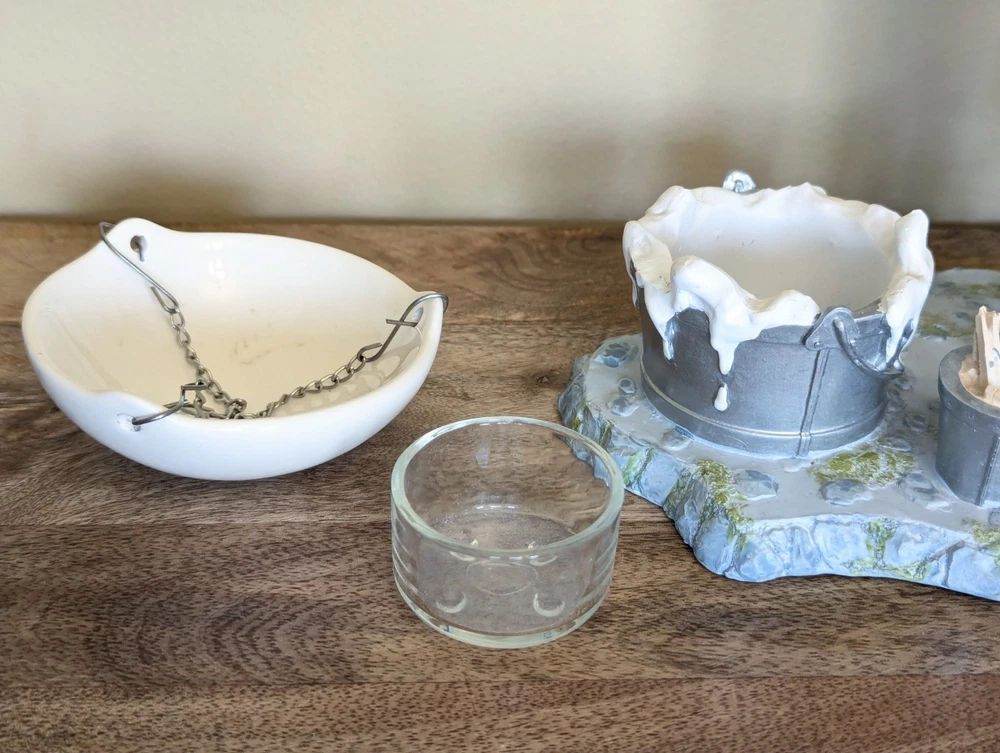 Yankee Candle Hanging Wax Melt Tart Warmer Water Pump, Wash Board, Flower Pot **Lovely piece in Excellent Pre-owned Condition! No chips or cracks! Please Note: the hanging wax holder has some surface scratches on the inside. See pictures. **SEE PHOTOS! This item is in Excellent pre-owned condition! From a pet-free & smoke-free home. Shipped quickly and carefully from Kansas! Thank you for looking 😊 -------------------------