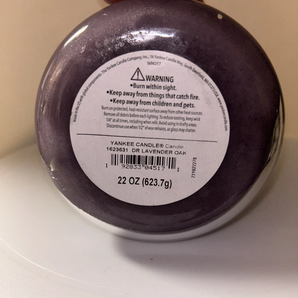 Material: Paraffin Wax Type: Jar/Container Candle Features: Decorative, Scented Scent: Lavender & Oak Brand: Yankee Candle Room: Bathroom, Bedroom, Indoor, Living Room, Lounge Country/Region of Manufacture: United States