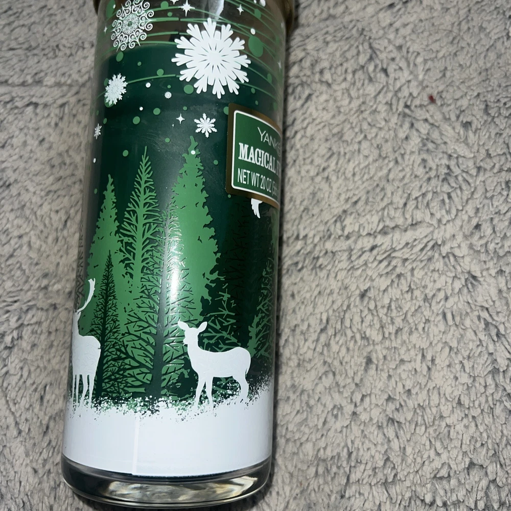 Yankee Candle Magical Frosted Forest Large 20oz Jar Candle with Deer Design