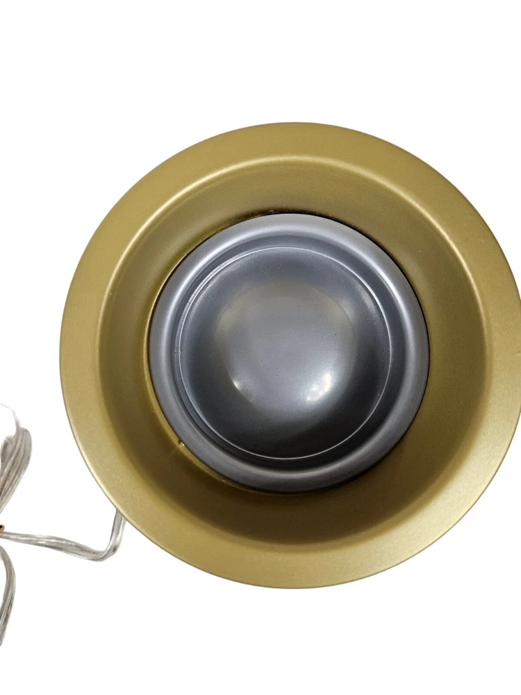 Yankee Candle Gold & Green Pinecone Scenterpiece Electric Glowing Wax Warmer In like new condition Yankee Candle Gold & Green Pinecone Scenterpiece Electric Glowing Wax Warmer. With an electric lit candle inside, this frosted scenterpiece warmer comes to life with flickering and glowing pinecones. Balsam Branches A fall and winter delight! With a timer power cord, you can place this warmer just about anywhere you like. It’s so easy to change scents in seconds—to match your mood, your day, your crazy busy life. Yankee Candles innovative Easy MeltCups release room-filling fragrance for enjoyment in just minutes. Place an Easy MeltCup in the Scenterpiece® warmer and turn it on. That’s it (really!). When you’re ready to change scents, pick up the cool-to-the-touch MeltCup and switch it out for another one. No wax to touch, no wax to clean. Easy MeltCups stack and store easily…bonus! Features quicky change fragrances with heat resistant meltcups, flameless warmer provides room filling fragrance, indicator light illuminates when warmer is on, automatic shut off (3, 6, or 9 hour setting), LED lights creates added ambiance, no messy clean up. Measurements height 6" diameter 5.25" This is a pre-owned item that may show signs of wear. In like new condition, no flaws.