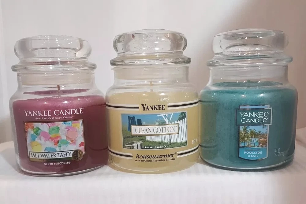 Never Used Yankee Candle Scented Medium Jar Candle 14.5oz Burn Time: 65 - 70 hours defects/damage: salt water taffy candle is discolored, 2 candles ( welcome christmas, balsam & cedar) have ripped stickers on the bottom Shipping: We ship once a week, any item that is paid by Sunday at Noon will be shipped on Monday Morning. Payment: immediate payment required at time of purchase . All sales FINAL, No Returns, No Refunds. "this item is not available for sale or shipment to Europe"