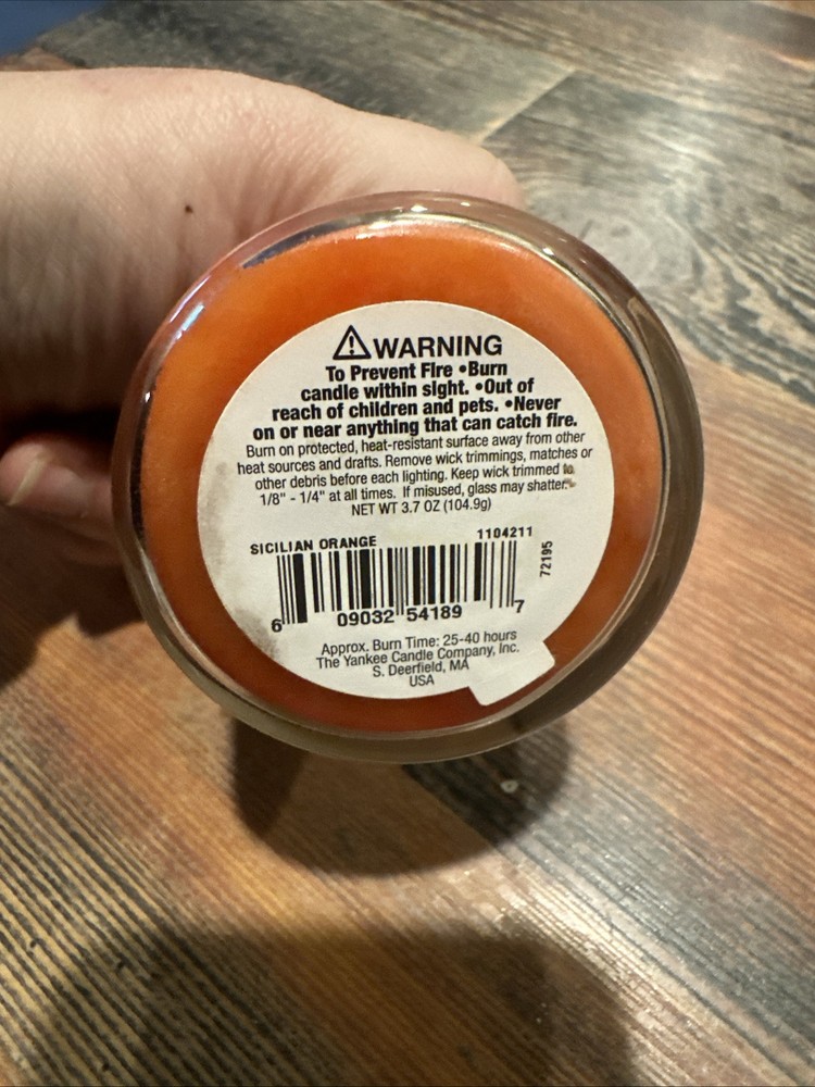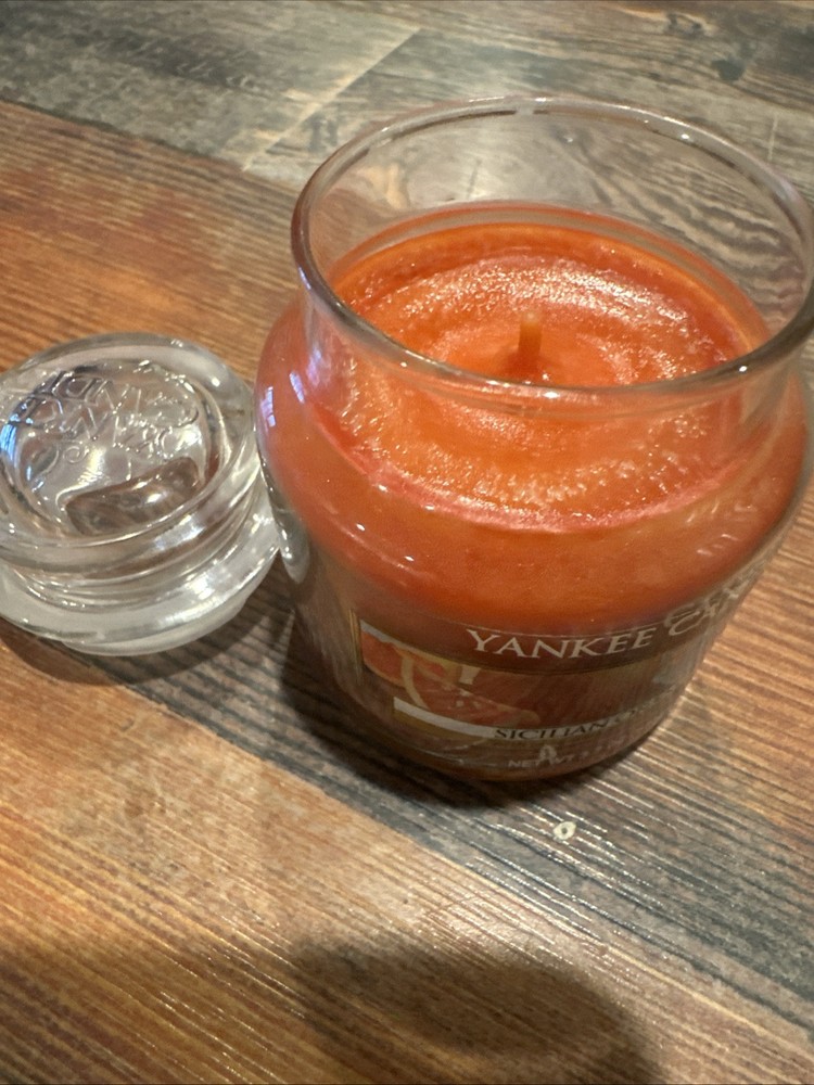 The Yankee Candle Sicilian Orange Mini Jar Candle in wax features a traditional design with a refreshing orange scent. With dimensions of 3.5 inches in length, 4 inches in height, and a weight of 3.7 ounces, this scented candle has a burning time of more than 5 hours. Ideal for various rooms like the bathroom, bedroom, and dining room, this Yankee Candle is a new addition to their world fragrance collection.