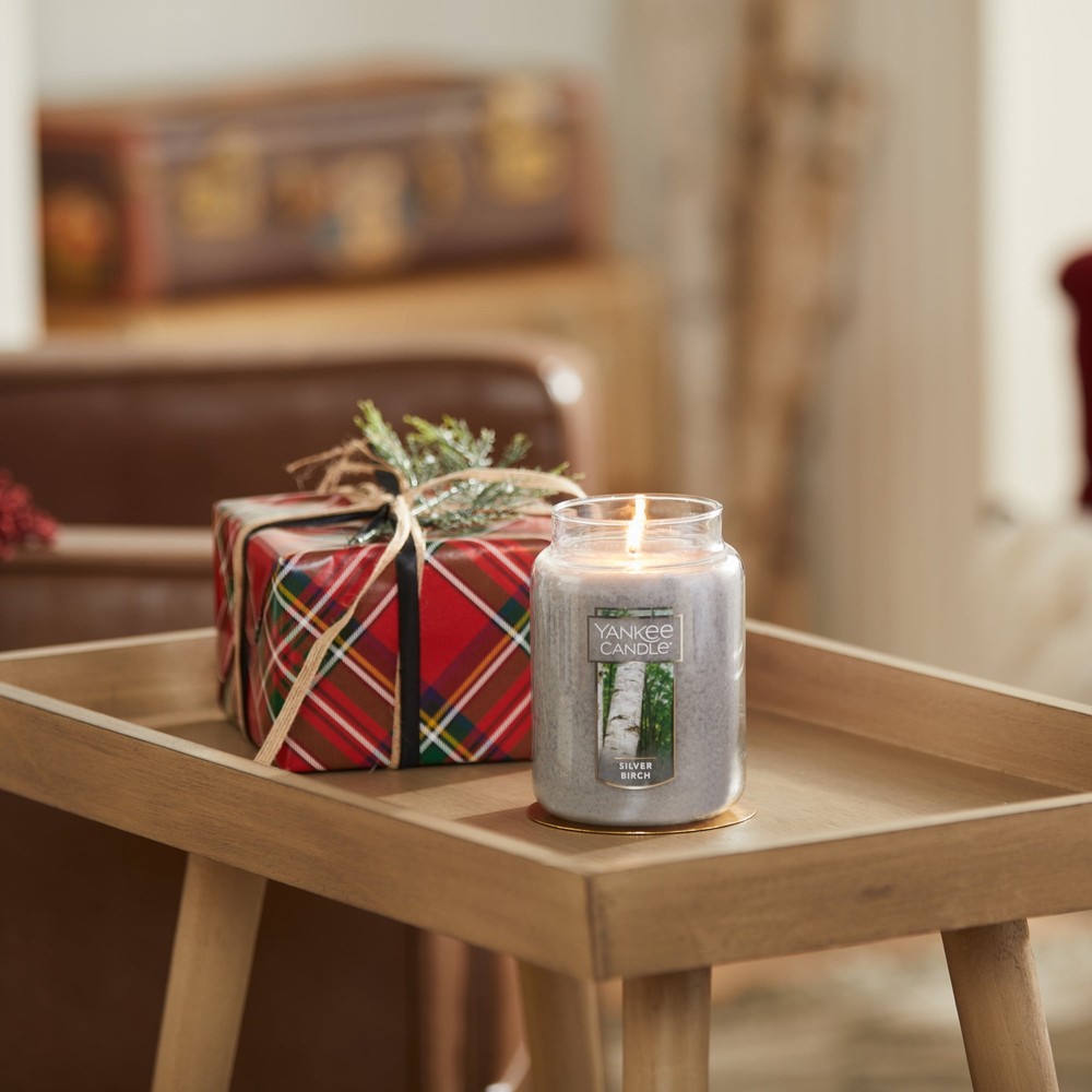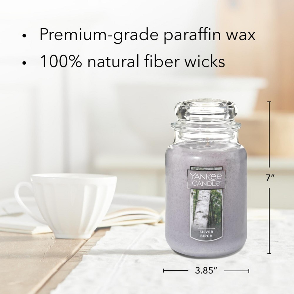 Our largest Jar Candle provides over 110 hours of soothing fragrance designed to create a welcoming home for family and friends. The iconic Jar shape is a symbol of our 50-year commitment to creating the world's finest candles. Each is made with premium-grade paraffin and the finest quality ingredients from around the world. And, we select the ideal natural-fiber wick for each fragrance to ensure the best possible burn. Yankee Candle Large Jar Candle, Silver Birch: The slight crispness of an early fall breeze mingles with the spicy dryness of just-turning leaves in this autumnal blend Paraffin-grade wax delivers a clear, consistent burn Large jar candle gives you 110-150 hours of burn time Measures 6.6" x 4" Available sizes: Large 2-Wick Tumbler, Large Jar, Medium Jar