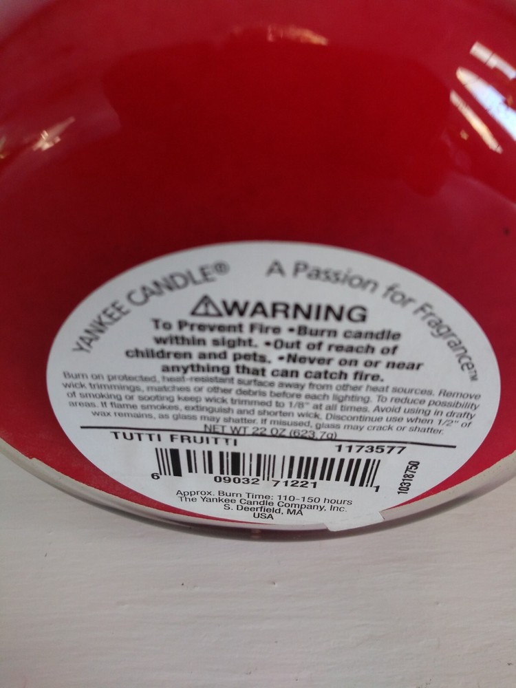 Material:Paraffin WaxShape:JarFeatures:ScentedSize:LargePower Source:CandleColor:RedScent:FruitNumber in Pack:1Theme:Tropical, NoveltyType:Scented CandleStyle:TraditionalBrand:Yankee CandleCountry/Region of Manufacture:United States