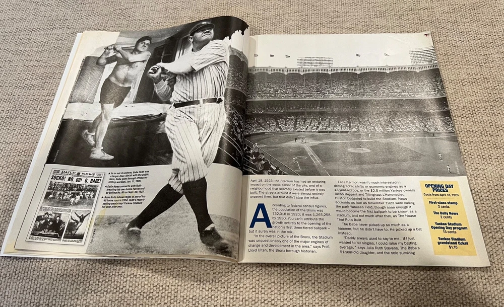 2008 Daily News The Stadium magazine containing parts 1,2,4,5,6. Missing part 3. Part 1 with Babe Ruth has a few pages with stains-see pics. Lot also contains 3 Yankees pages from the daily news. Page with Mariano Rivera and Jorge Posada has a small rip on the right side. This lot also has Baseball’s Great Dynasties the Yankees which is a nice collection of Yankees history including Babe Ruth, Lou Gehrig. Yogi Berra, Reggie Jackson and many more!