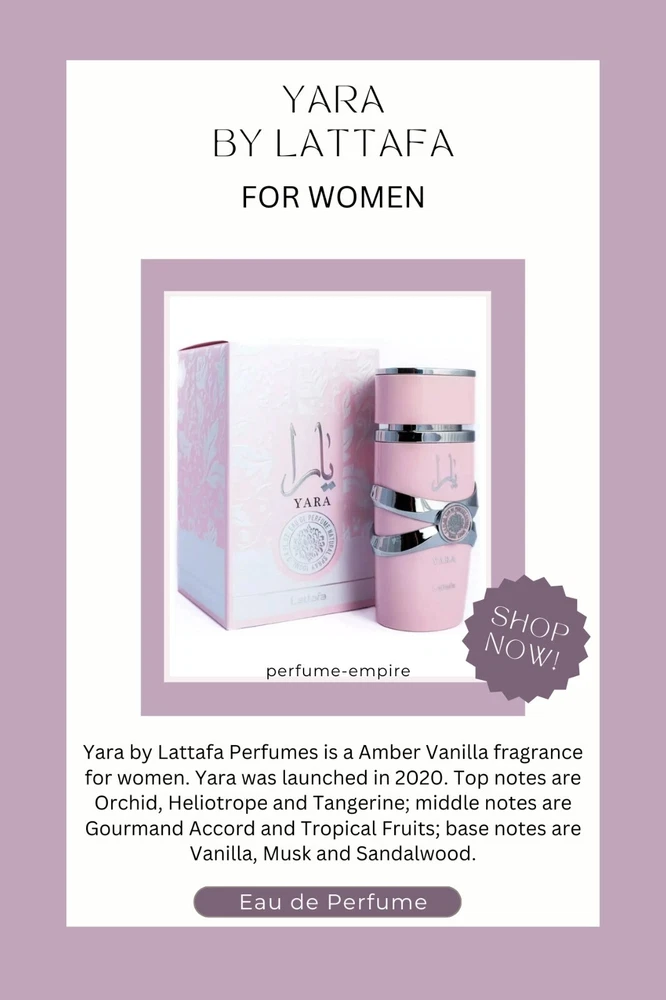 Features BRAND: Lattafa FRAGRANCE NAME: Yara SIZE: 3.4 oz / 100 ml CONCENTRATION: Eau de Perfume FORM: Spray CONDITION: New GENDER: Women PACKAGE TYPE: New Retail Box