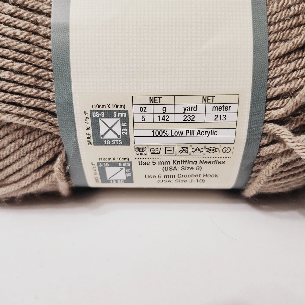 gtin13:Does not applyUPC:Does not applyProduct Line:SoftWeight:4 - Medium/WorstedUnit of Sale:UnitStyle:PlainBrand:Yarn BeeType:Low PillShape:SkeinFiber Content:AcrylicColor:Brown