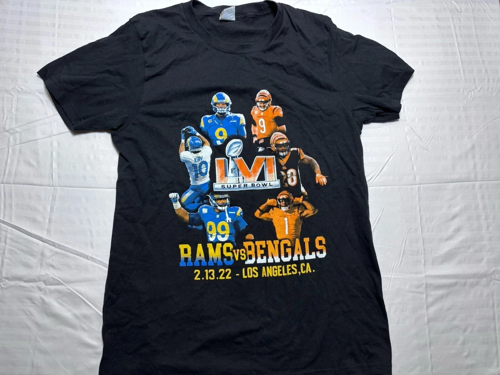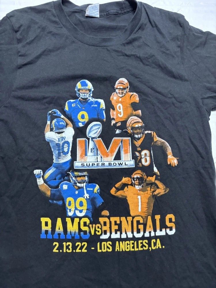 Yazbek 2012 SUPER BOWL LVI Bengals VS RAMS NFL T SHIRT Mens Medium Los Angeles. Pre owned shipped with usps garish advantage.