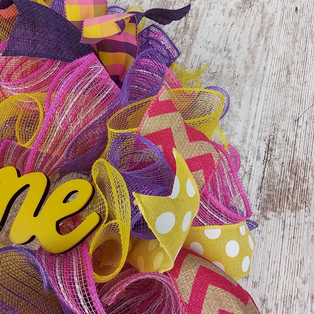 This vibrant wreath adds a cheerful pop of color to any front door! The mix of purple, pink, and yellow with the cute welcome sign makes it so inviting. Love that it's customizable—perfect for adding a personal touch. The quality is fantastic, and it looks even better in person. Highly recommend for a bright, welcoming vibe all year round!